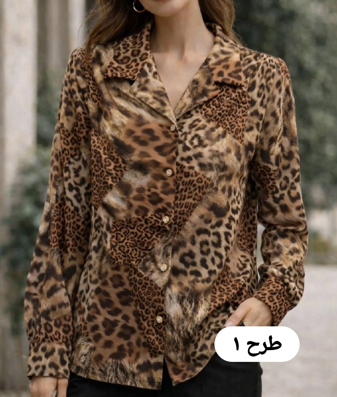 شومیز زنانه پلنگی یقه مردونه جلودگمه آستین پاگون دار
