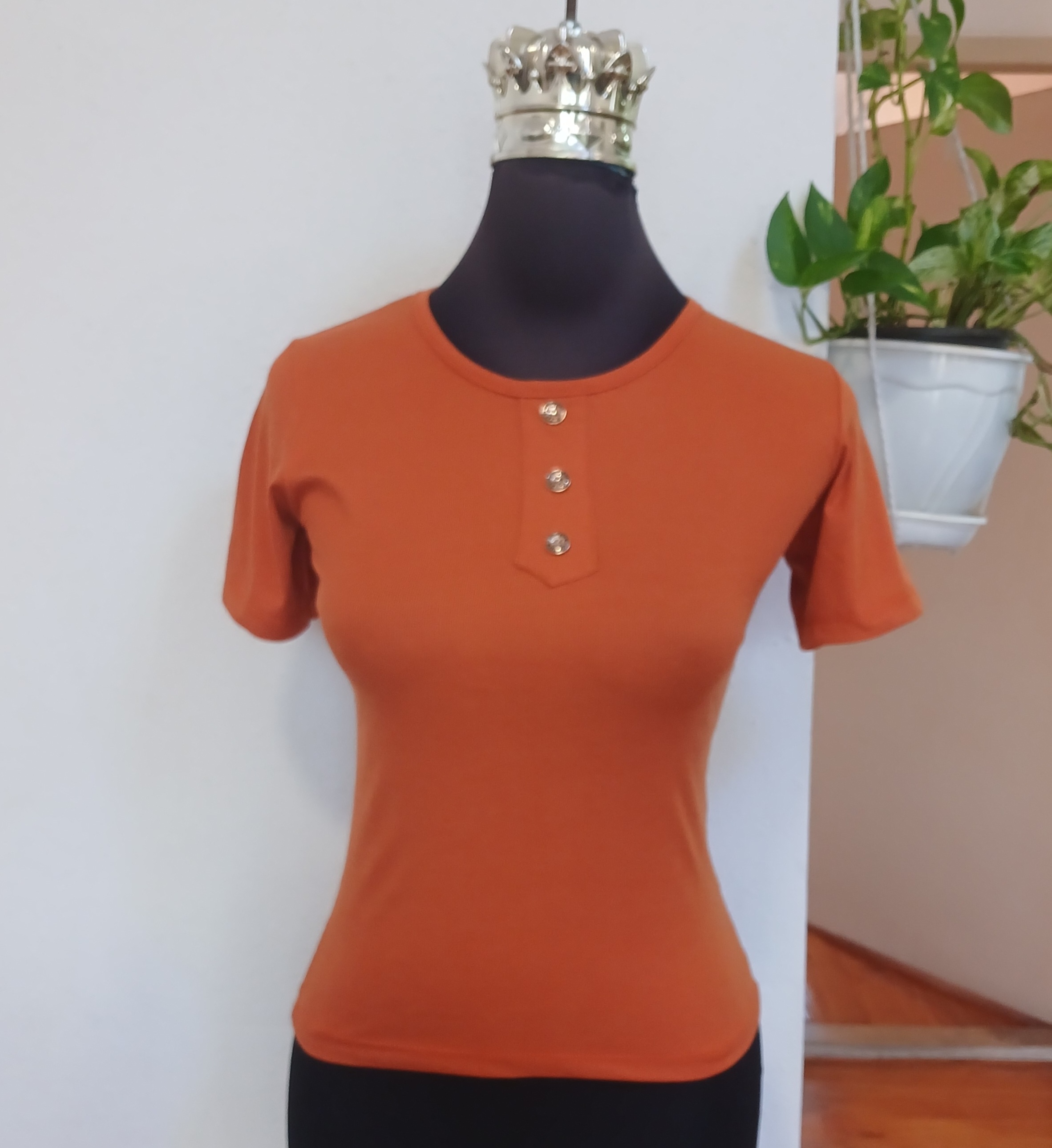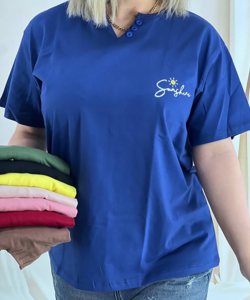 تیشرت زنانه و دخترانه سه دگمه یقه گرد کبریتی