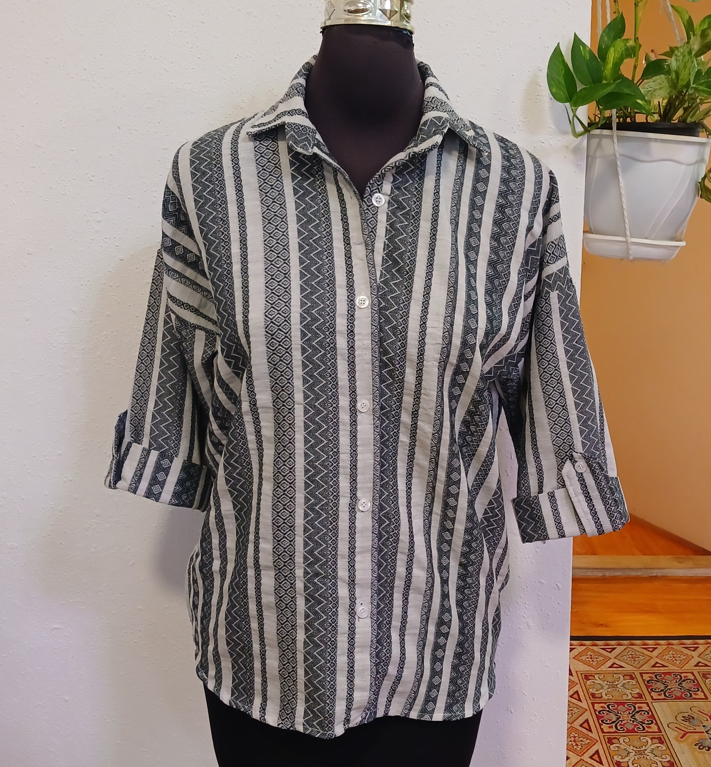 شومیز زنانه حصیری پشت پیله تک جیب دگمه دار