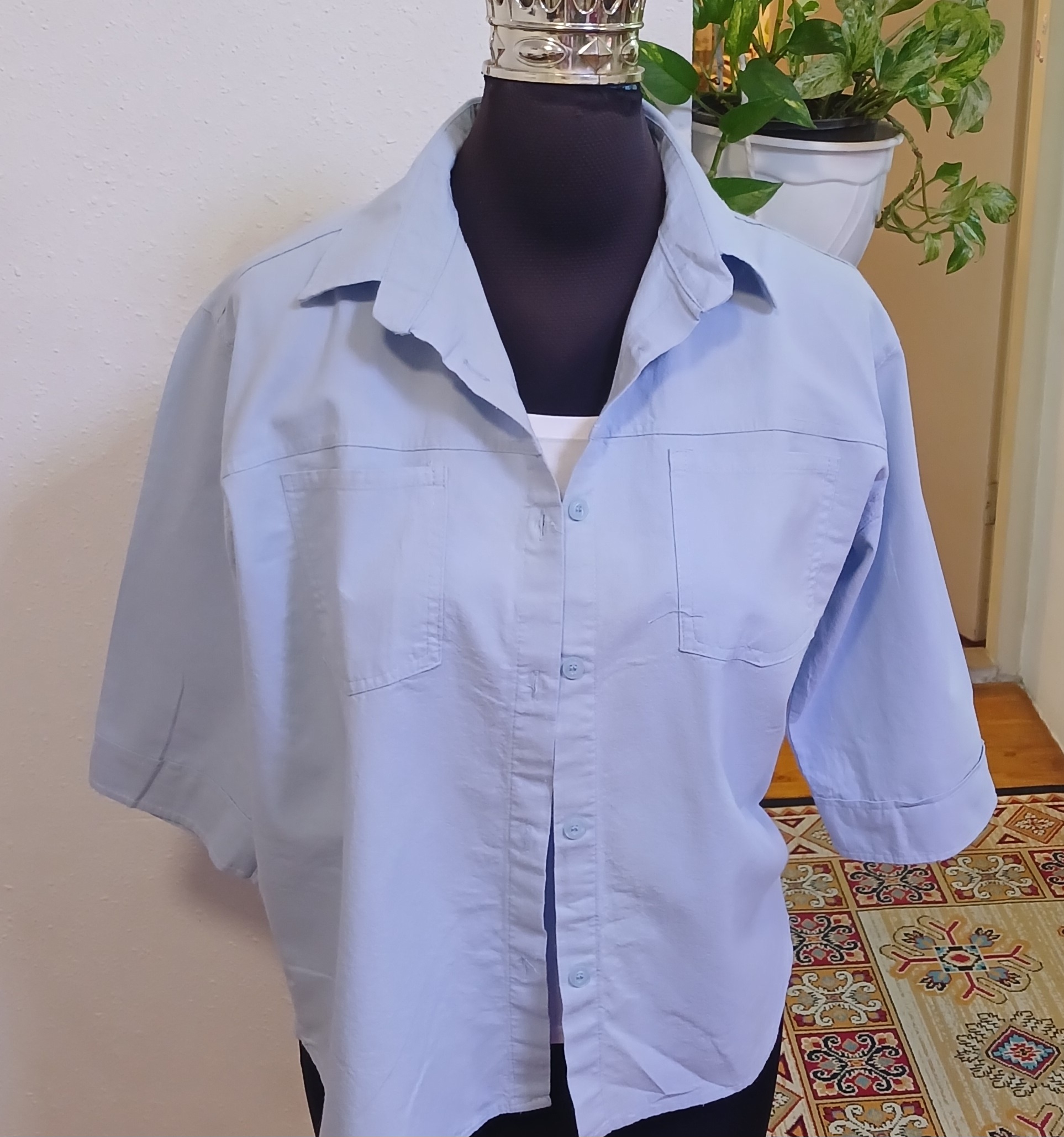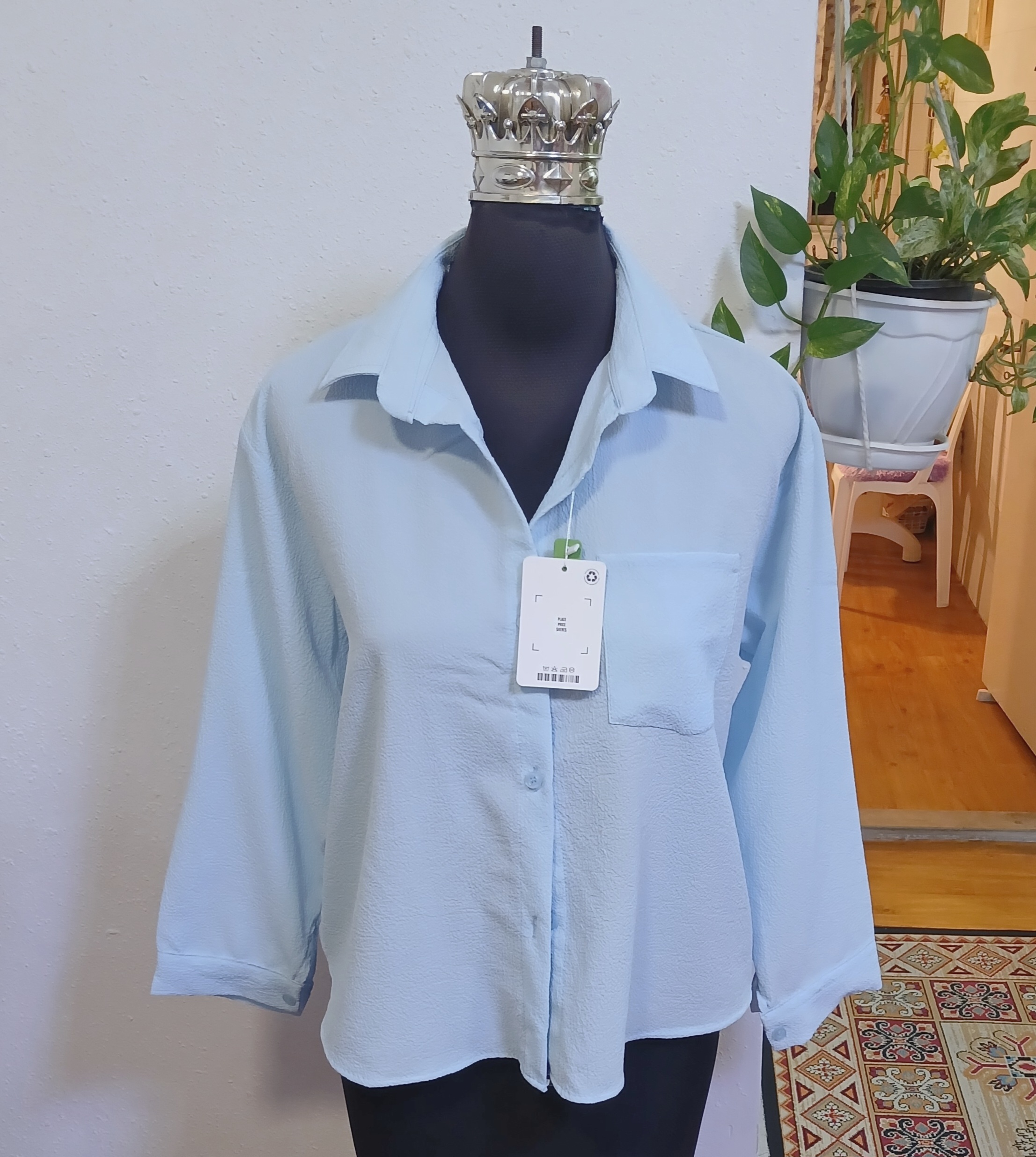شومیززنانه باکسی آستین پاکتی پشت پیله دار جلو دگمه