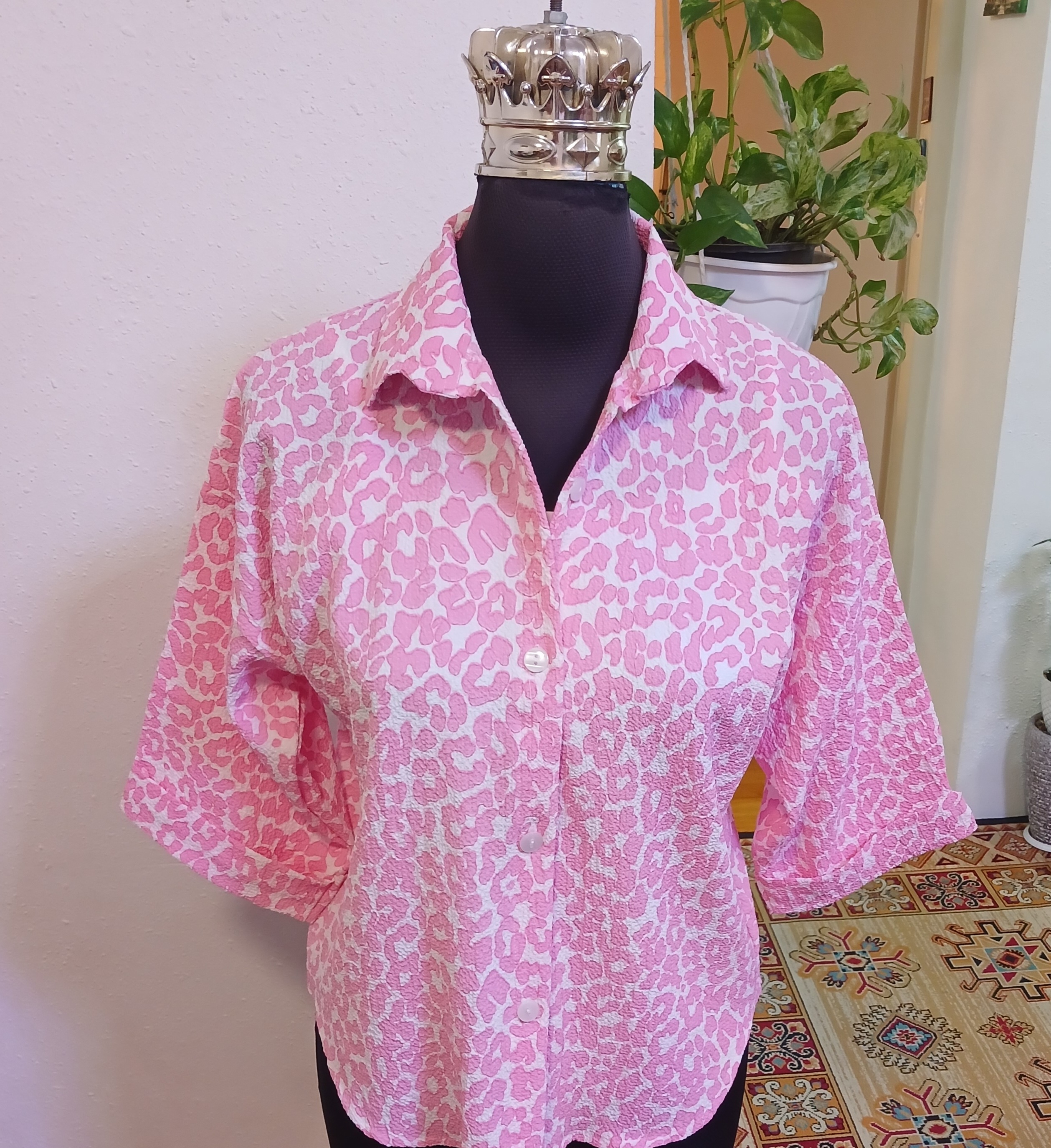 شومیز زنانه یقه مردونه جلودگمه آستین پاگون دار پلنگی