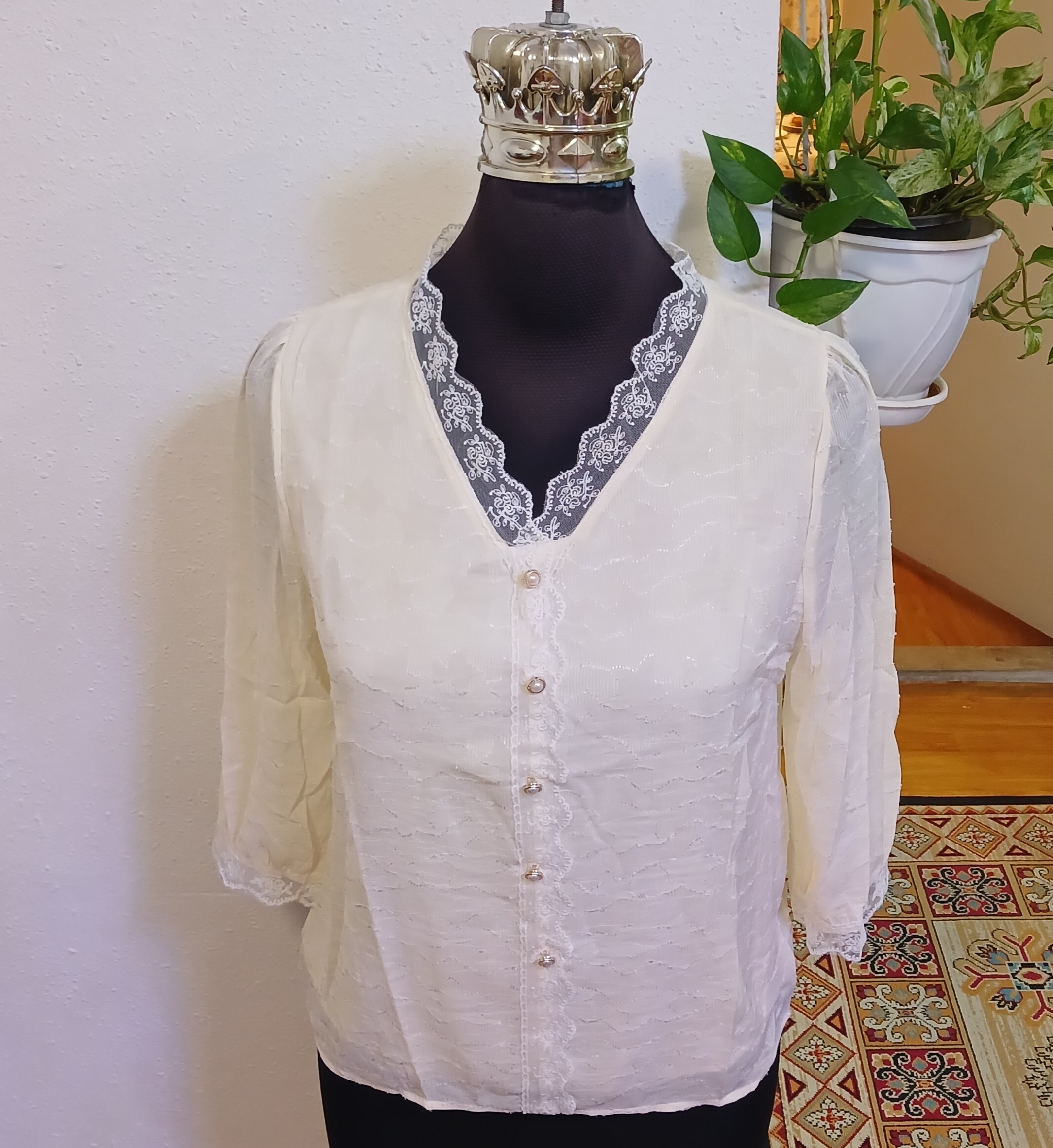 شومیززنانه حریرطرحدار یقه و سرآستین گیپوردار وارداتی