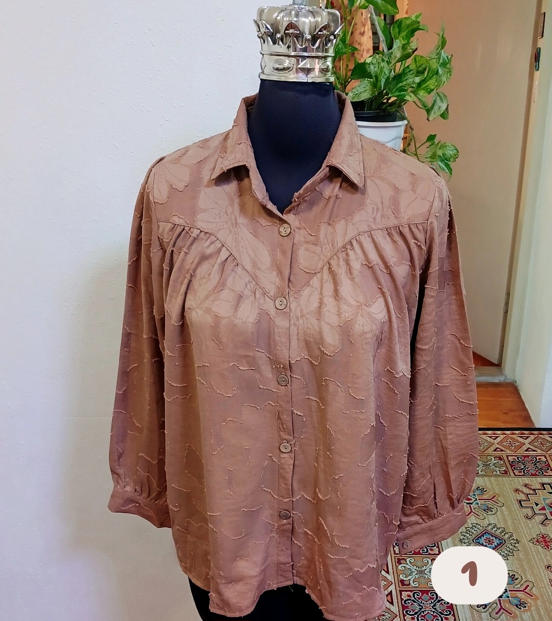 شومیز جلو دگمه گل گچی آستین پاگون دار