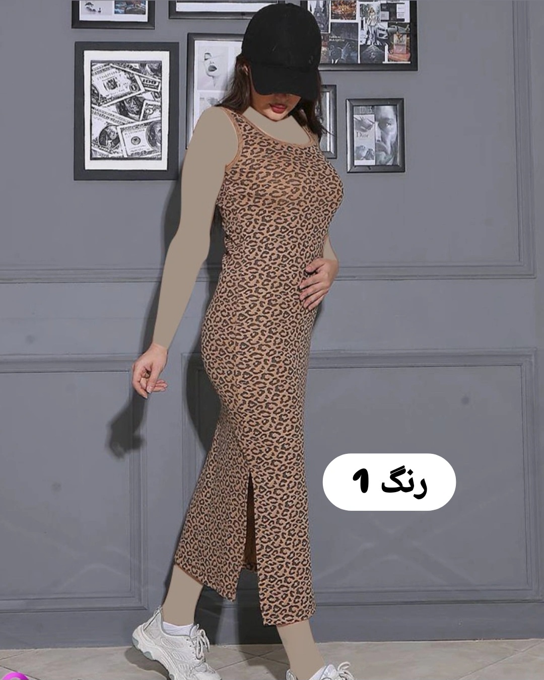 سارافون زنانه حلقه ای پلنگی کبریتی با کشسانی بالا