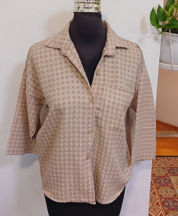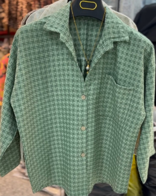 شومیز زنانه حصیری پشت پیله تک جیب دگمه دارجنسش حصیری بسیار نرم و لطیف خوش استایل یه شومیز طرحدار فانتزی شیک در چهار طرخ و رنگ زیبا وجذاب