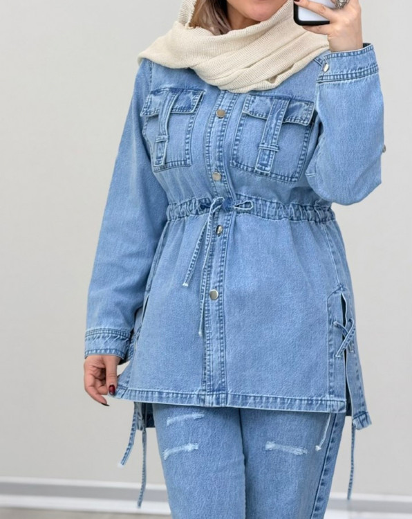 تونیک مانتو جین زنانه ( جین اصلی ) کمر گتر یقه مردونه جنسش جین اصلی بسیار خوش استایل و شیک در دو رنگ زیبا وجذاب ؛ اگه دنبال یه تونیک جین خاص هستی اینو انتخابش کن . از بهترین های مجموعه پوشاک زنانه شین شاپ برای مداستایل و تیپ خاص شما که شیکپوش هستی