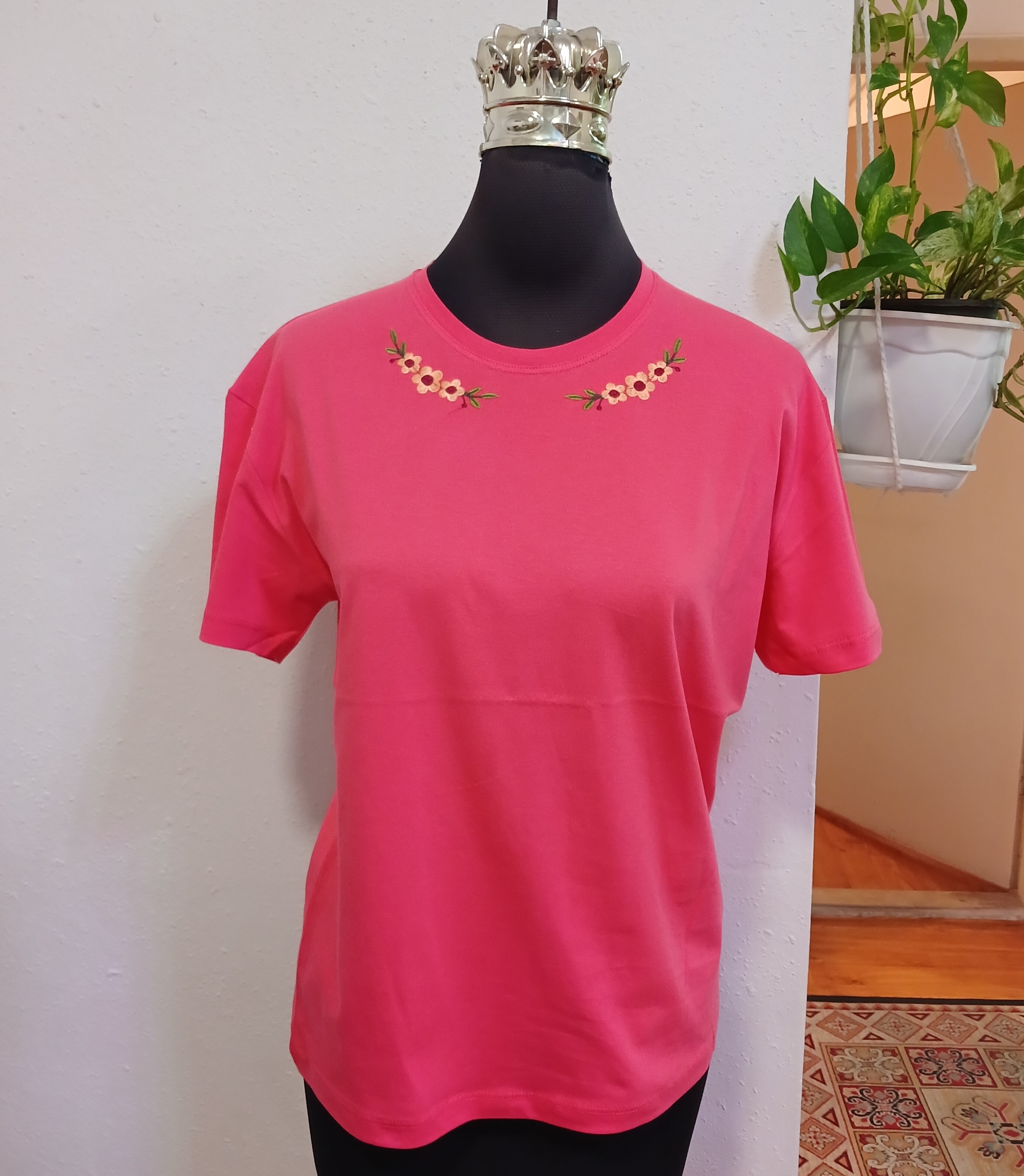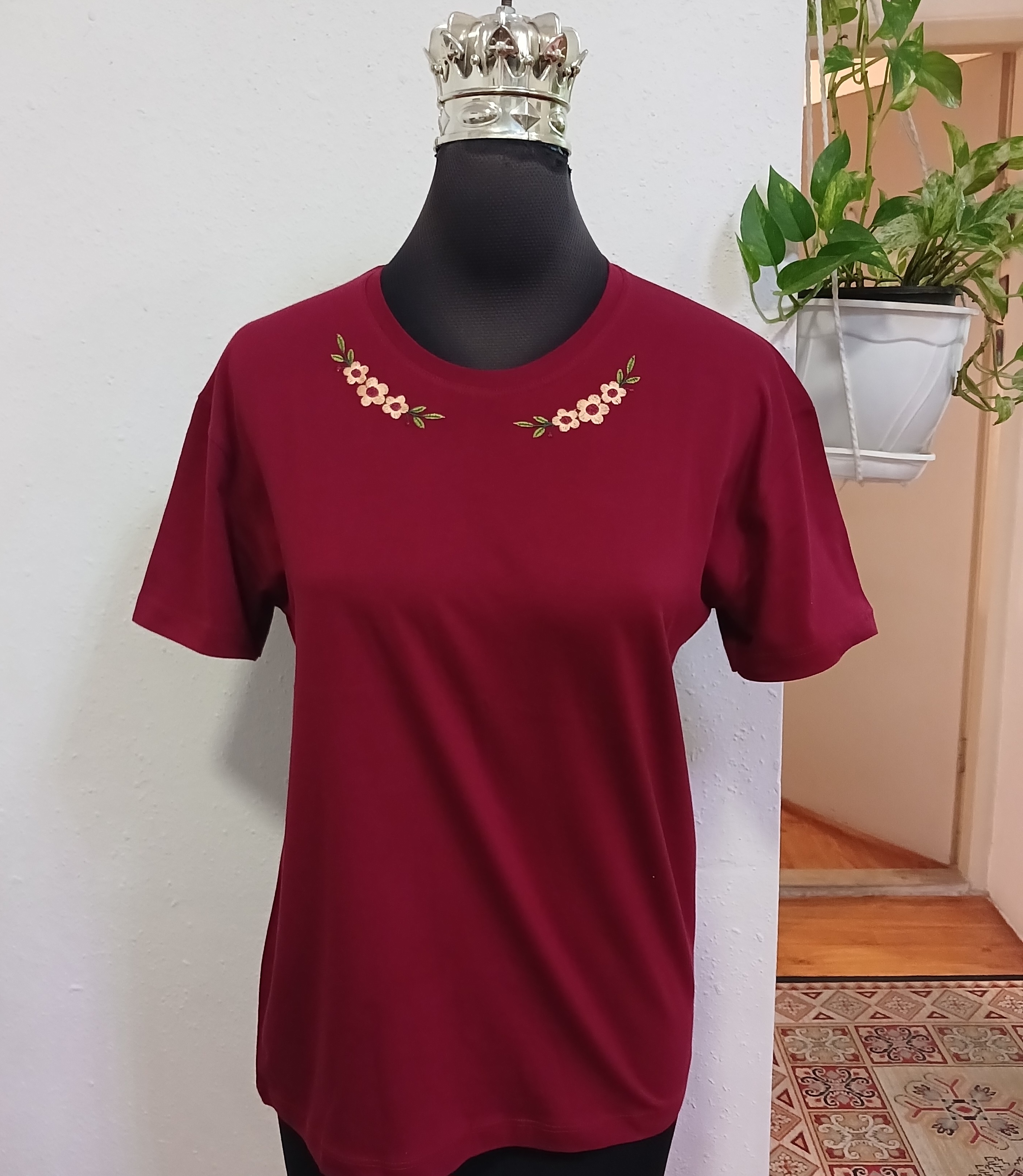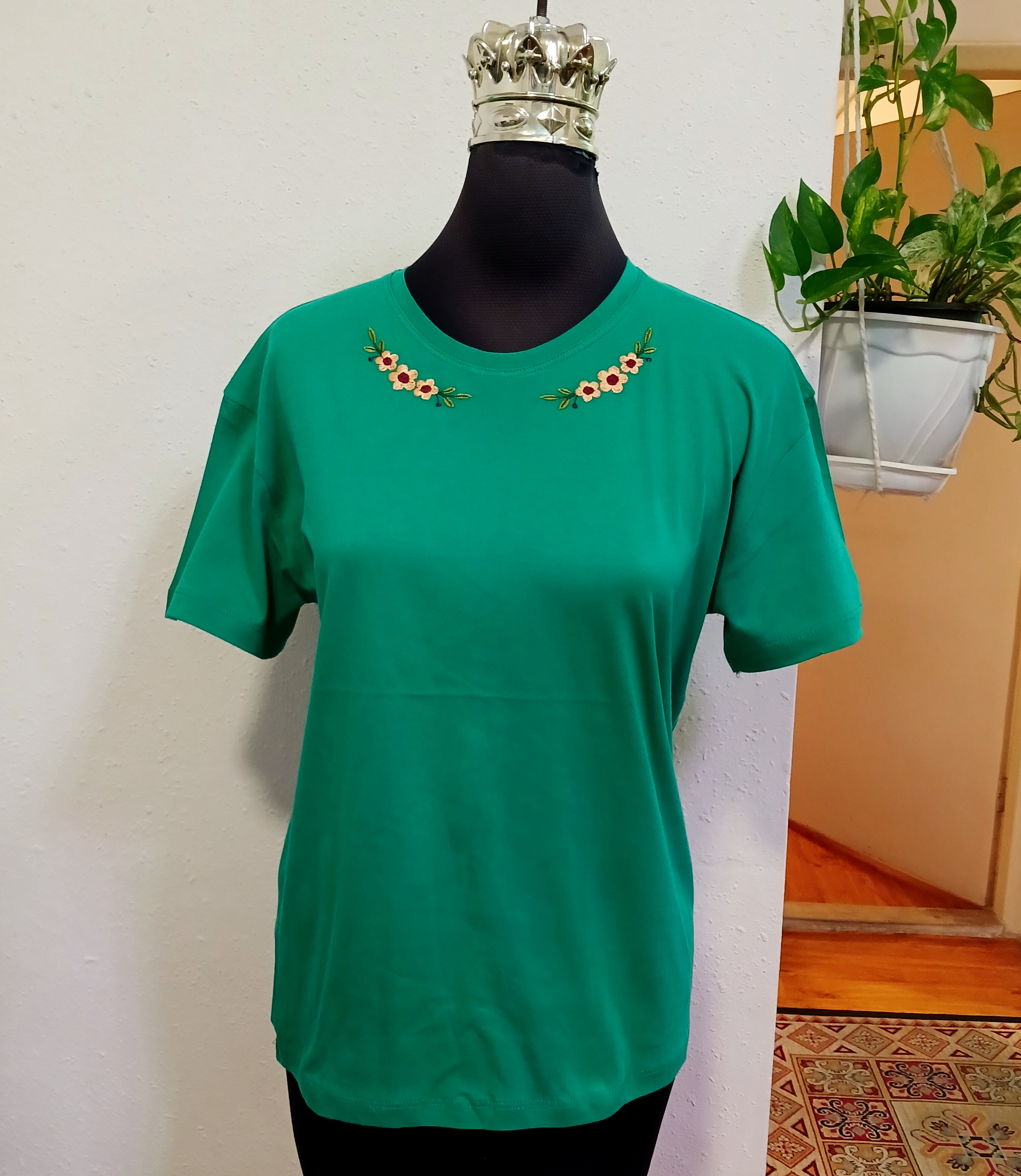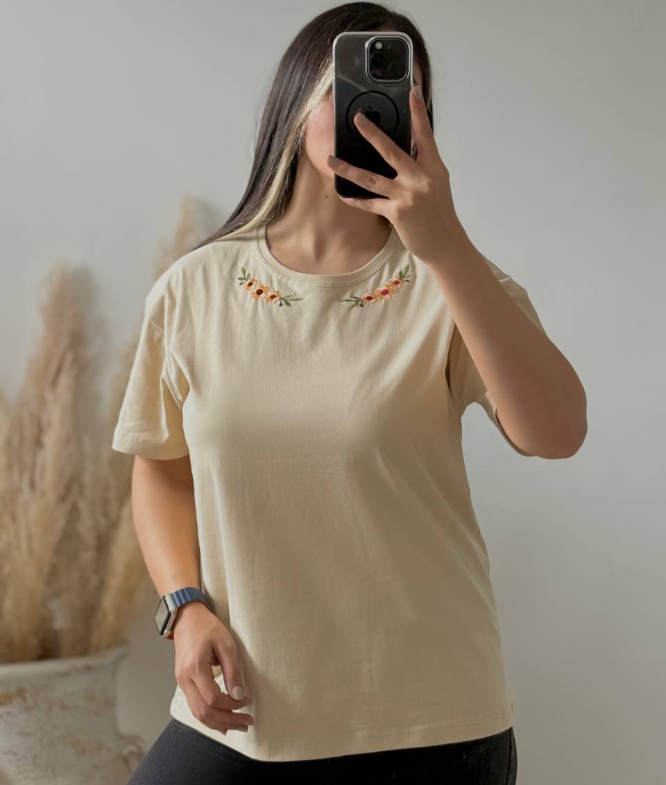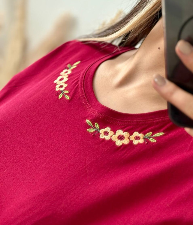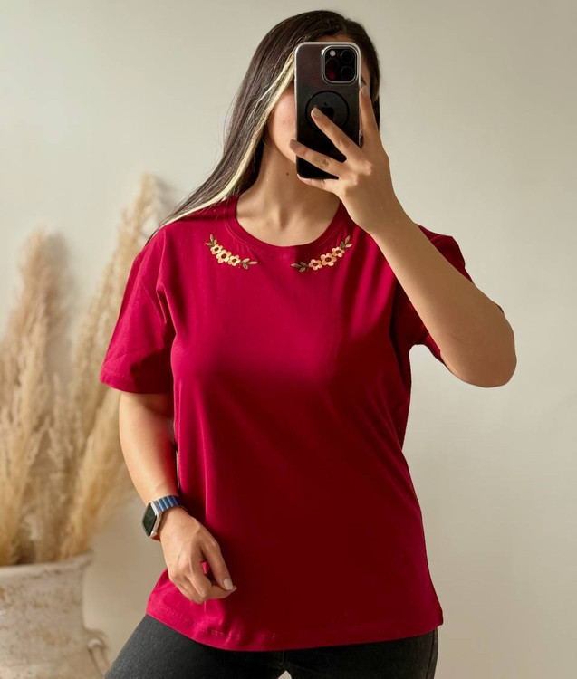 تیشرت زنانه سوپرپنبه گلدوزی شده قواره دار