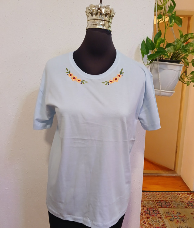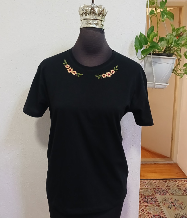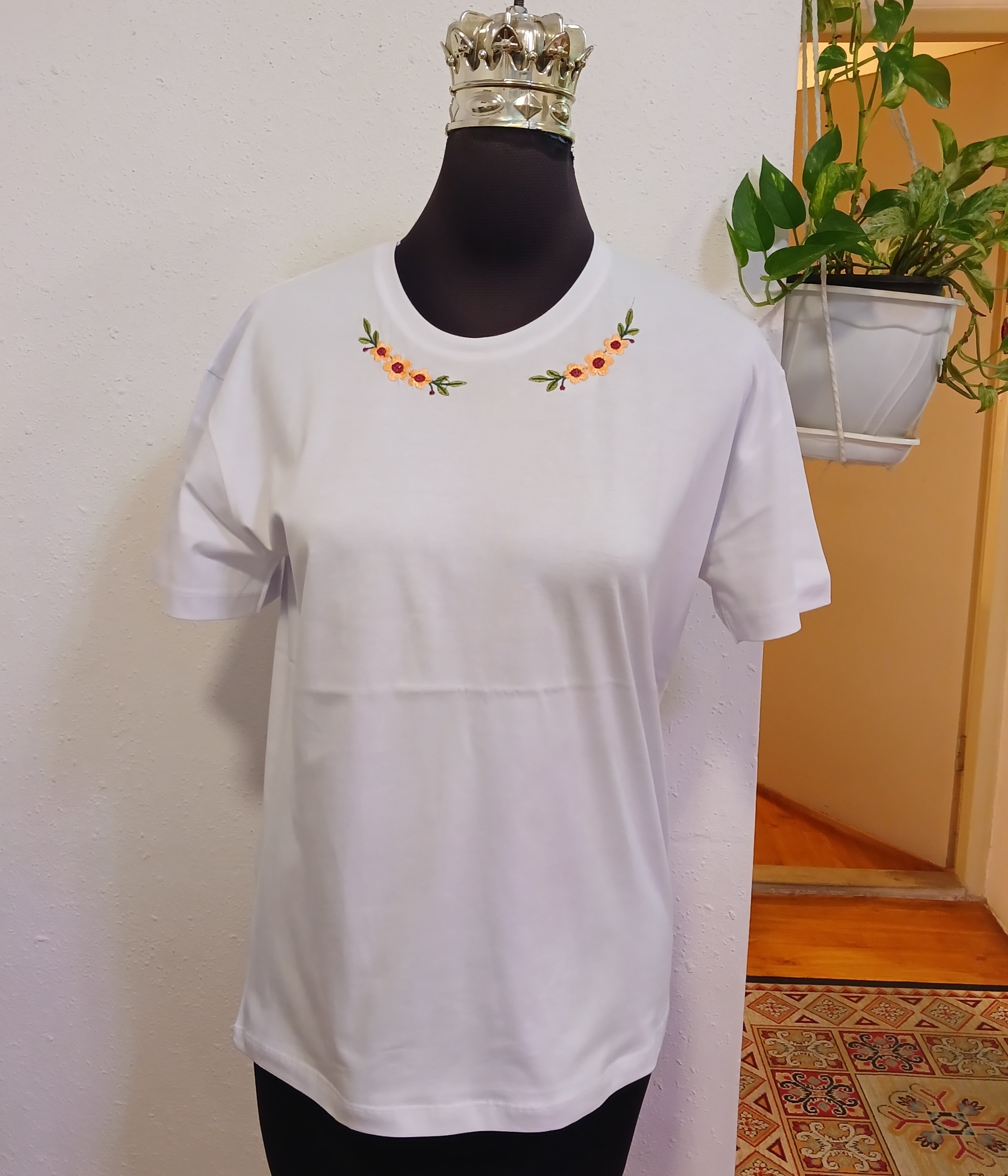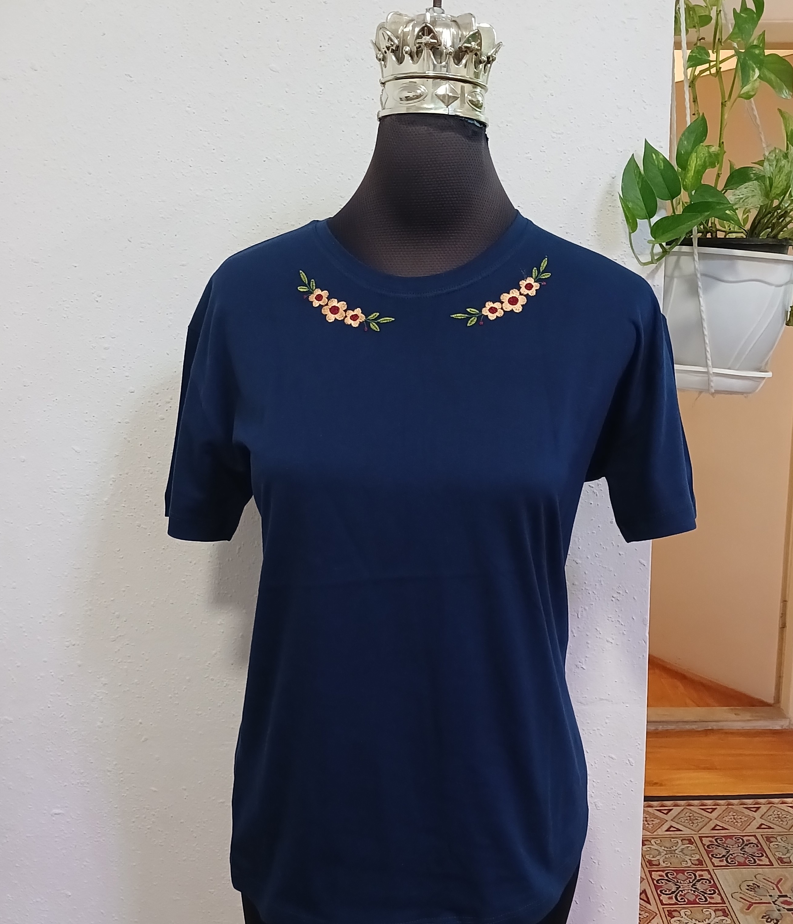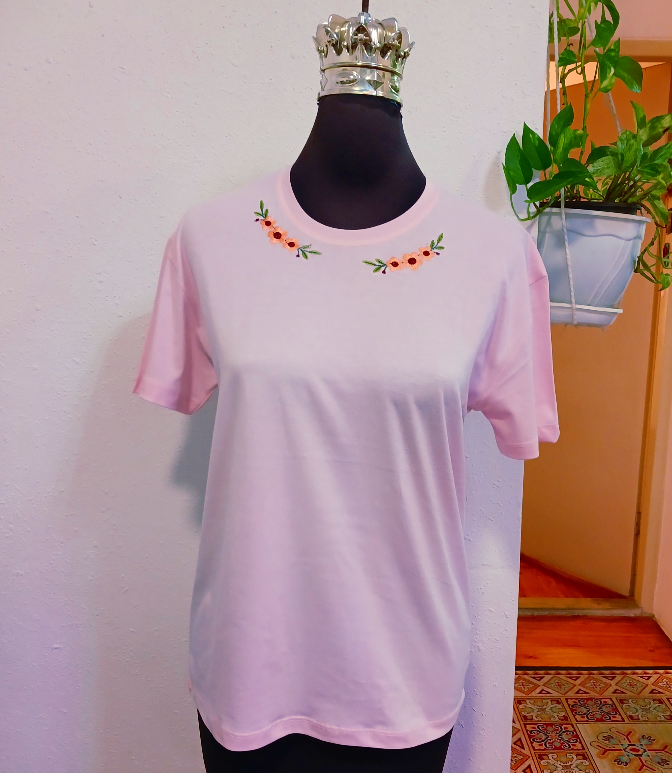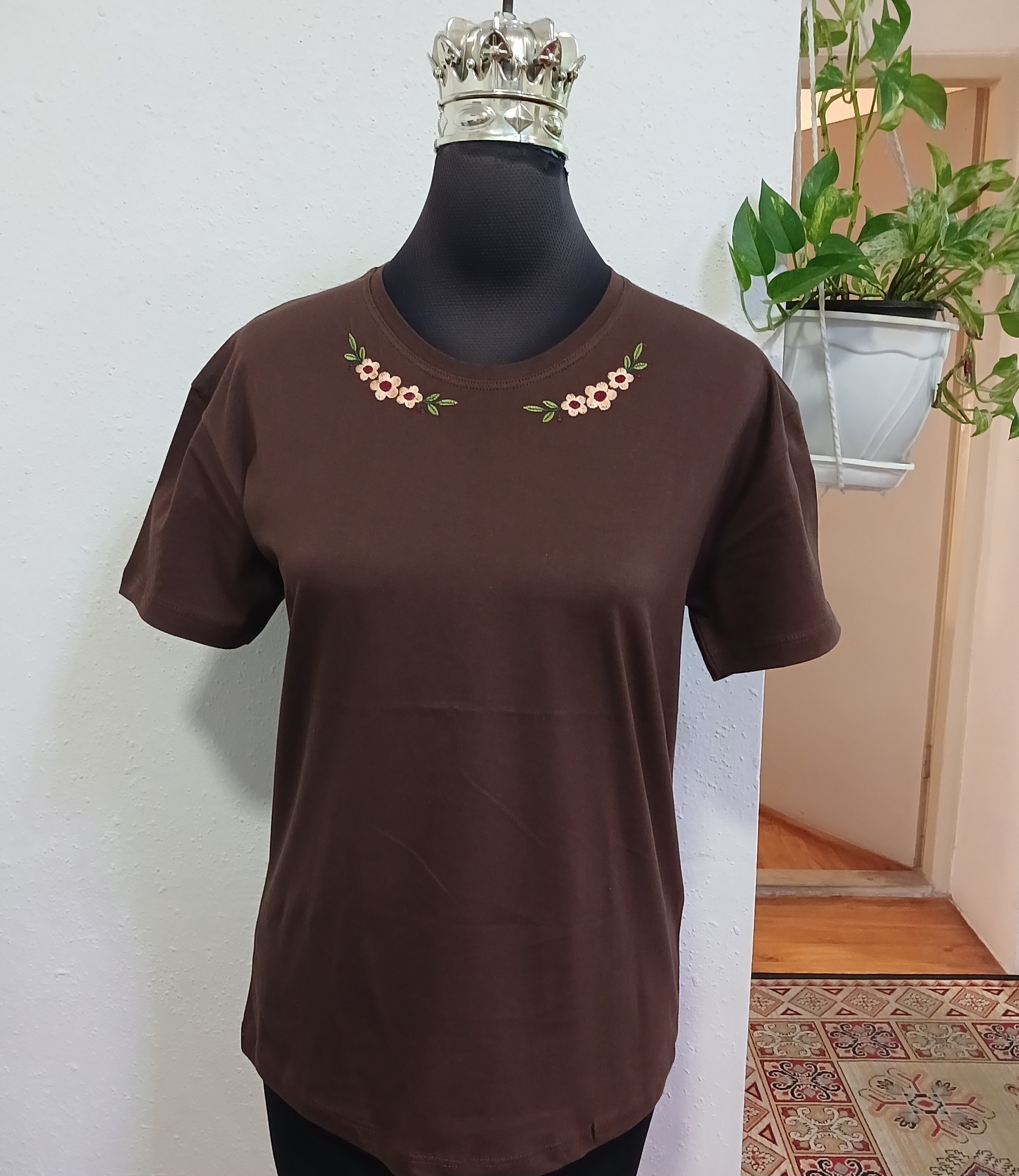 تیشرت زنانه سوپرپنبه گلدوزی شده قواره دار