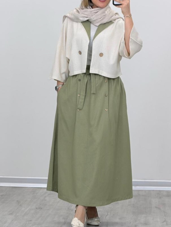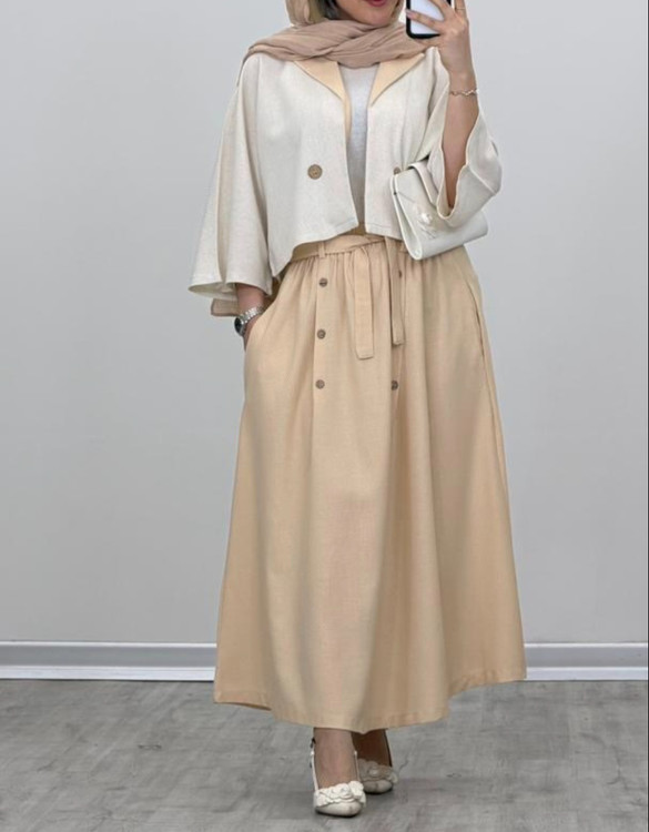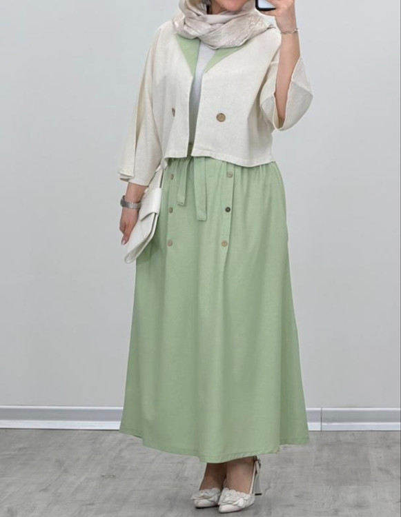 کت دامن لینن جناقی ؛ یه کت دامن شیک و جذاب ؛ با ترکیب رنگ های زیبا ؛ این کت دامن مزونی جنس بسیار عالی داره از مجموعه پوشاک زنانه شین شاپ واسه اونایی که دوست دارن شیکپوش باشن و واسه مداستایل و تیپخاص شون ارزش قایل هستن