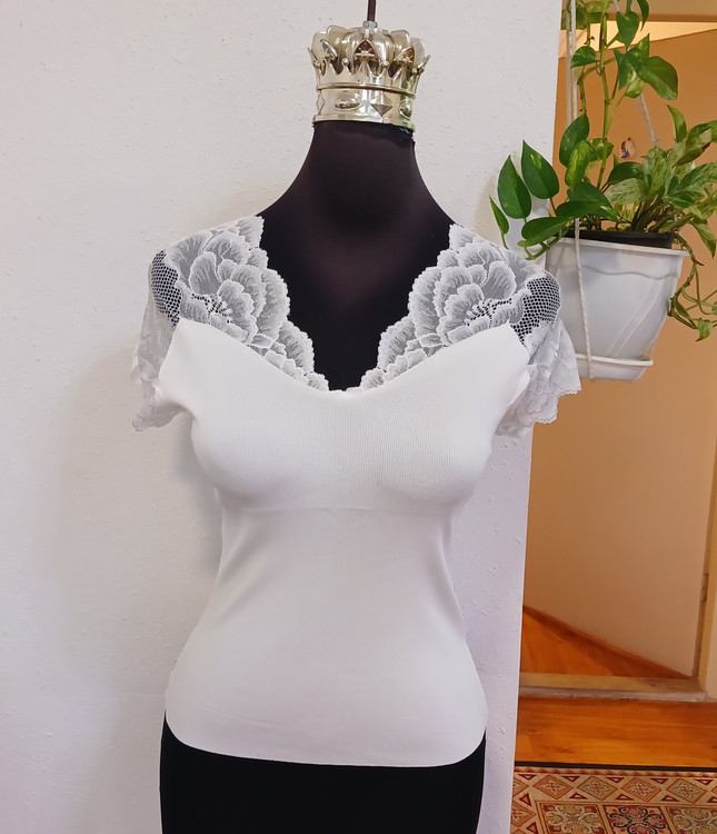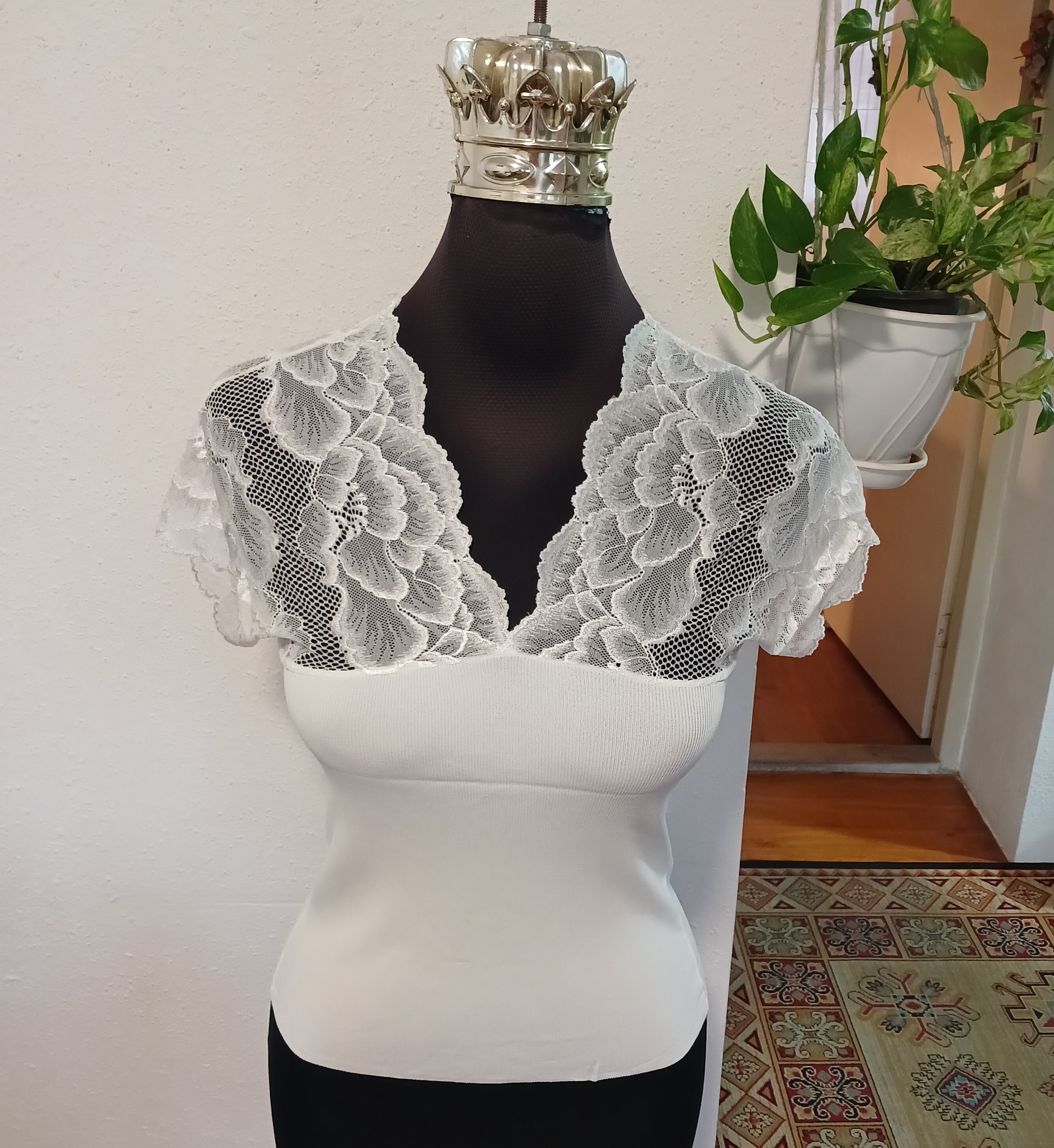 تاپ زنانه وارداتی کریستالی آستین سرخود جلو و پشت گیپور جنسش بافت کریستالی لطیف با کشسانی بالا بسیار خوش استایل و شیک؛ اگه دنبال یه تاپ بافت وارداتی گیپوری ظریف و خاص هستی اینو انتخابش کن . ازبهترین های مجموعه پوشاک زنانه شین شاپ برای مداستایل و تیپ خاص شما که شیکپوش هستی