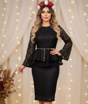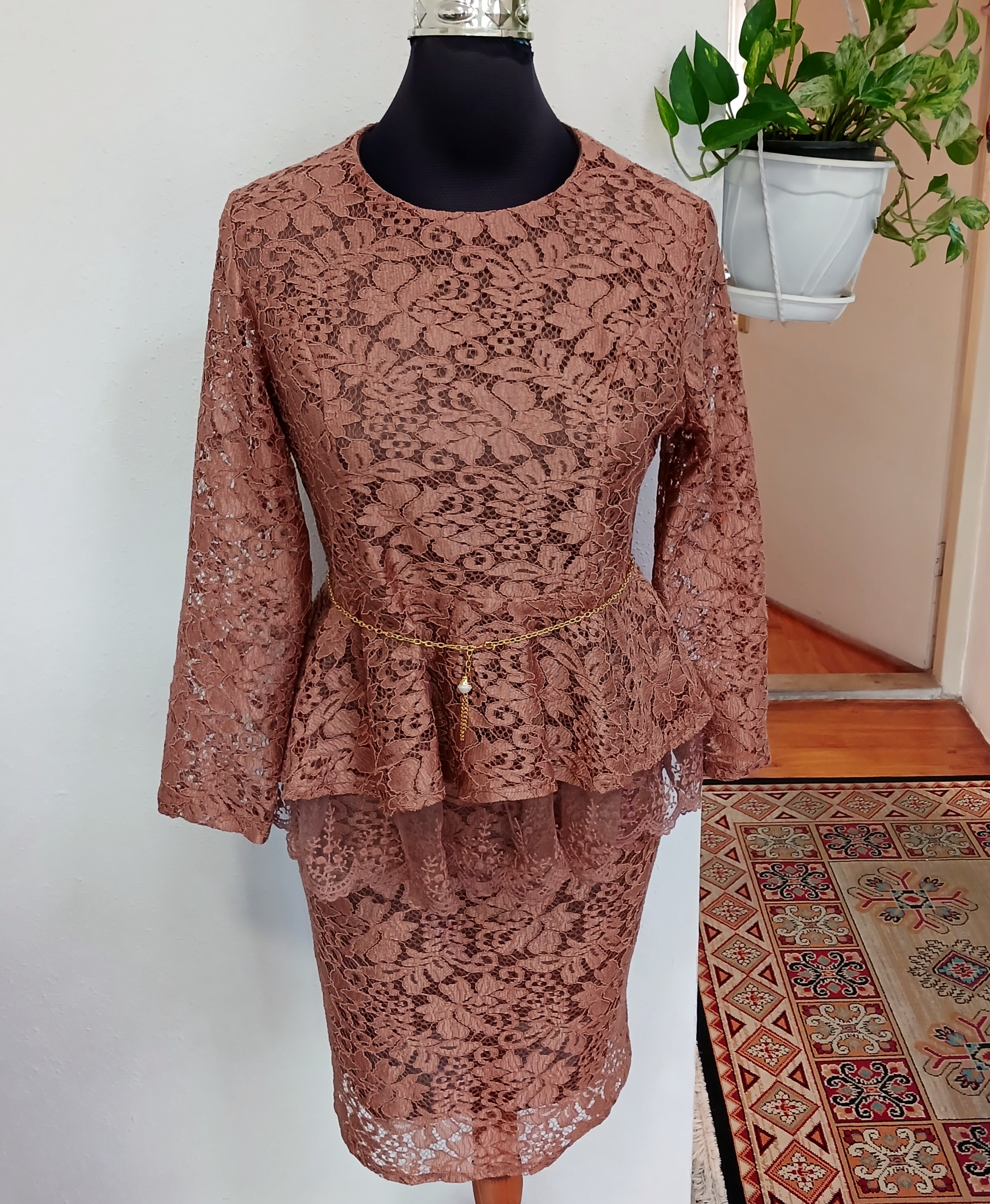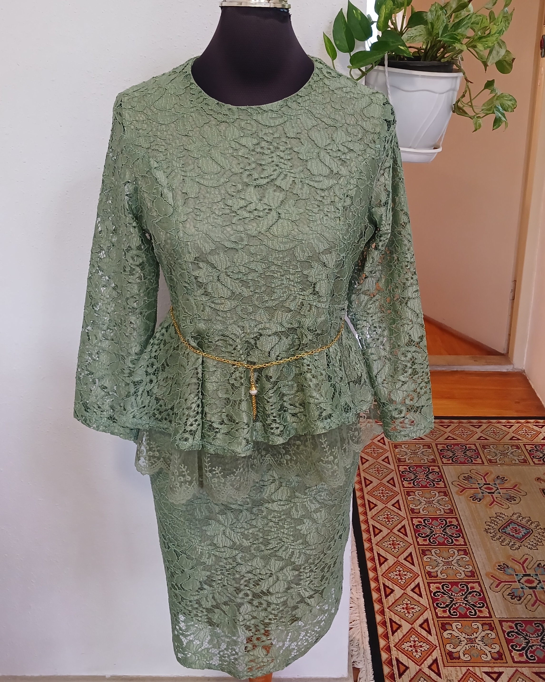 ست شومیز و دامن گیپور مجلسی همراه با کمربند زنجیری