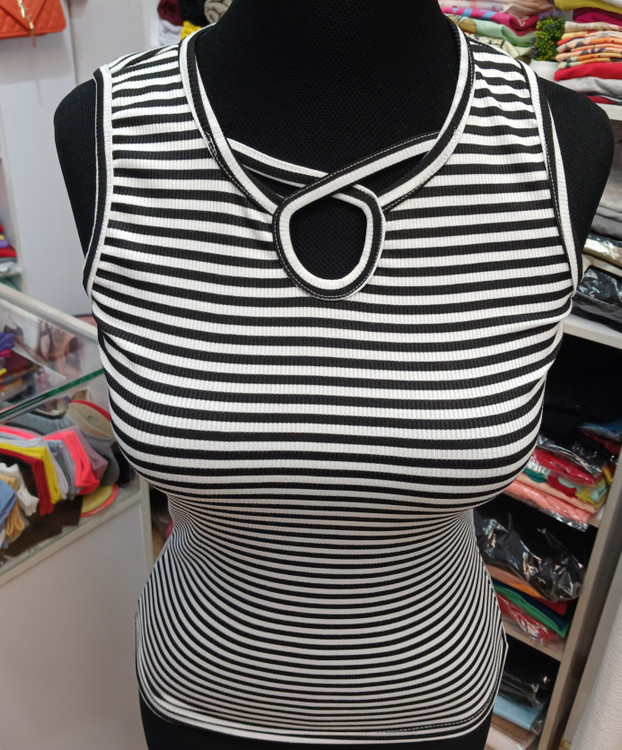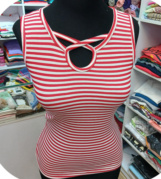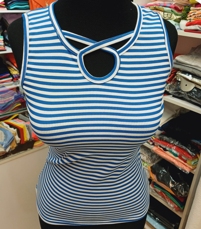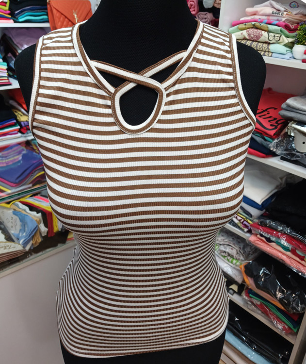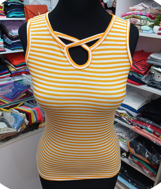 تاپ راه راه یقه ضربدری , جنسش کبریتی فانریپ کش ؛ با کشسانی عالی ؛فری سایز ؛ مناسب تا سایز44 ؛ دارای رنگبندی زیبا وشفاف ؛ تنخور عالی وشیک