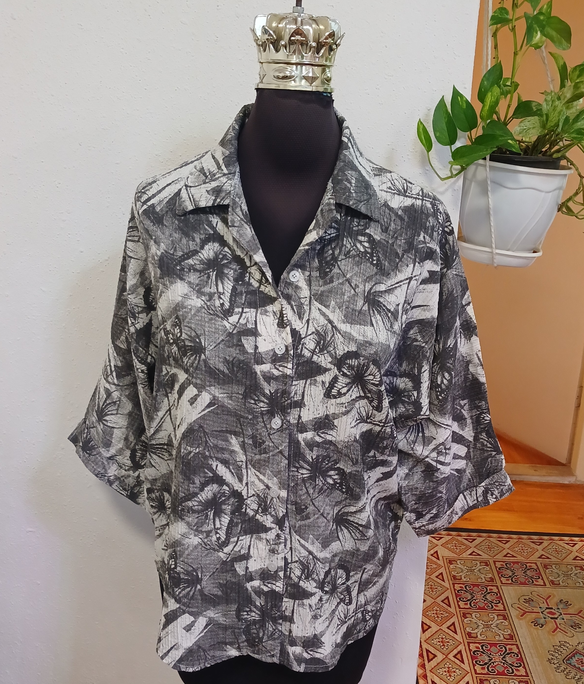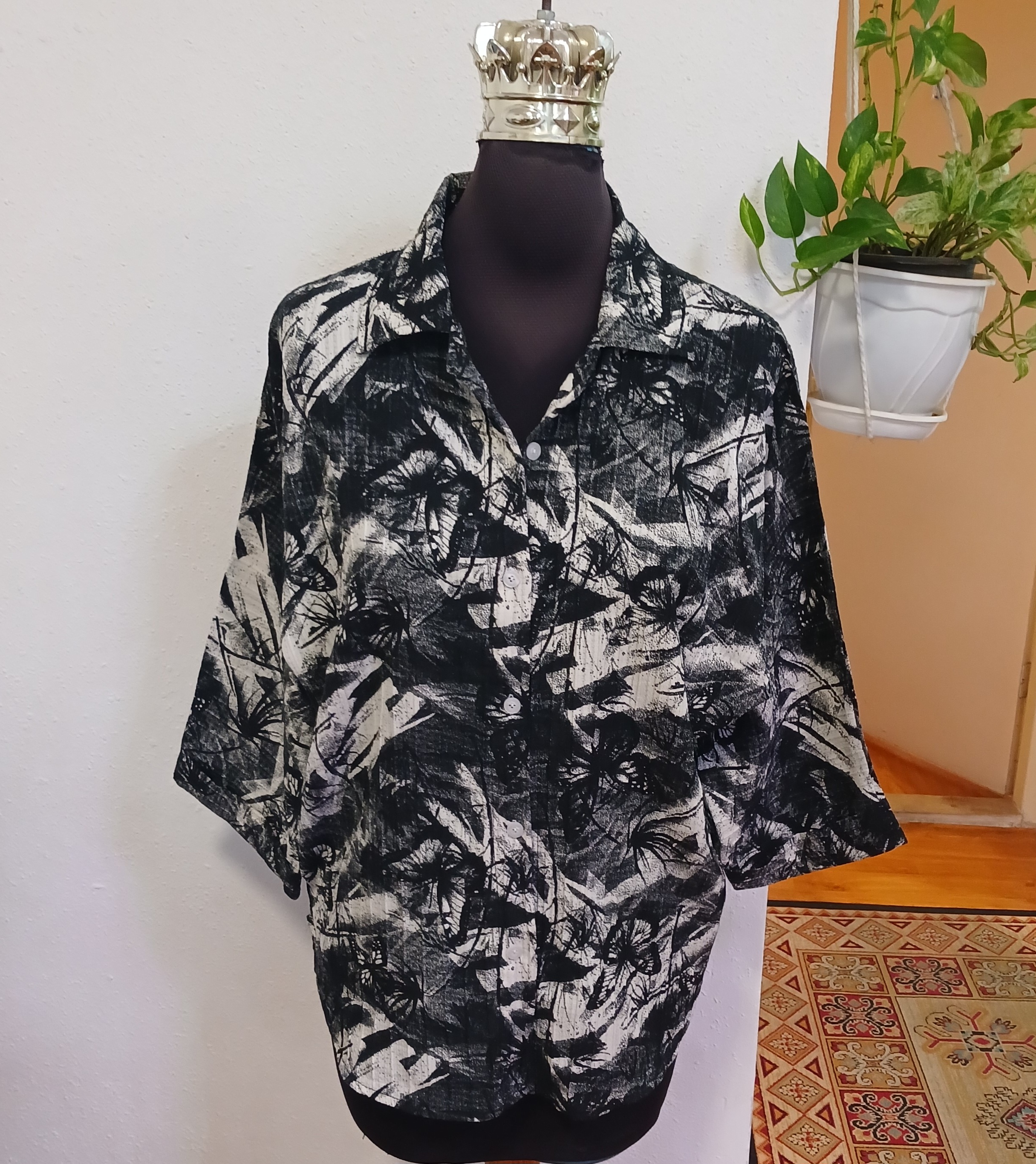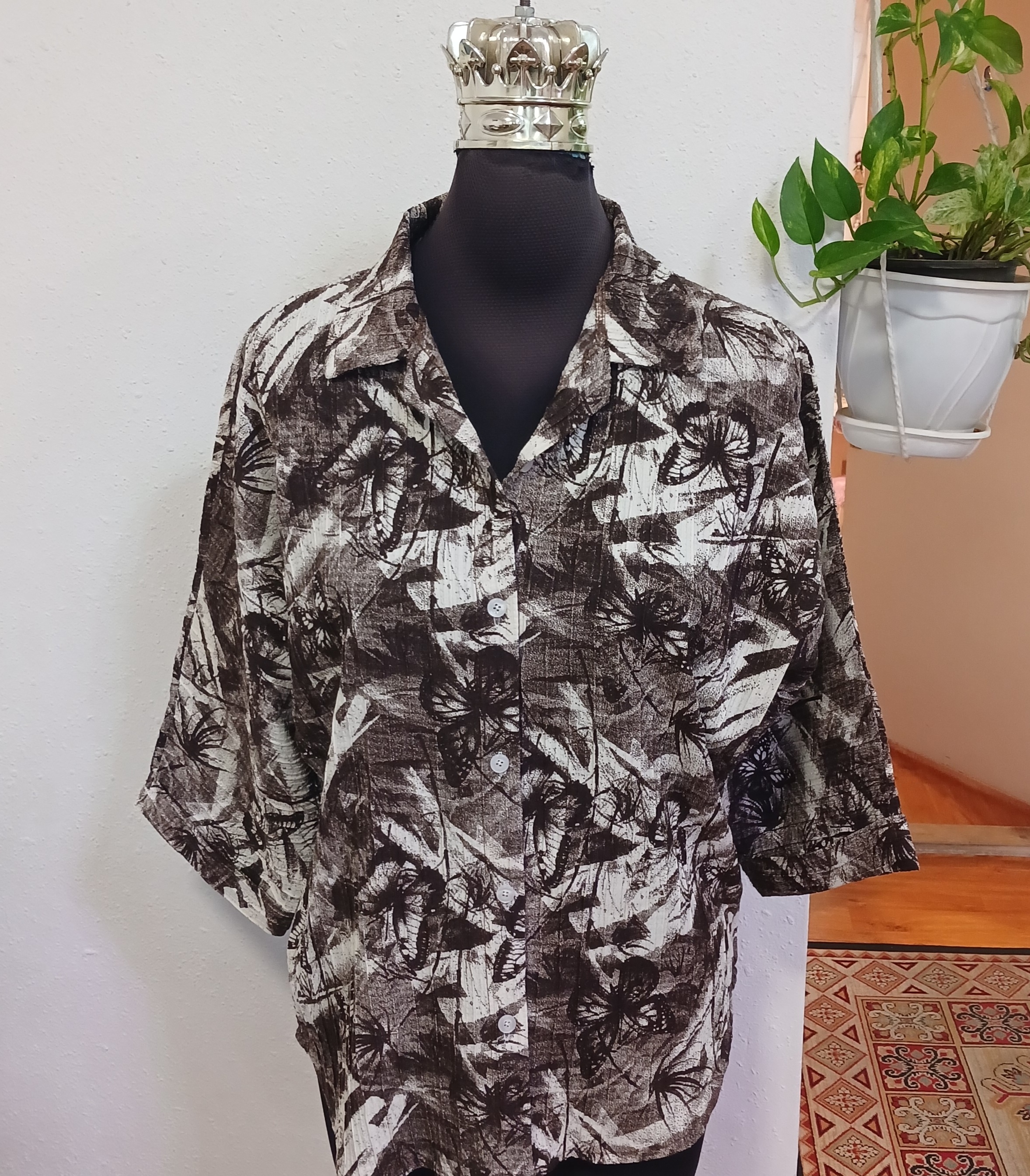 شومیز زنانه یقه مردونه جلودگمه کیمینو آستین پاکتی