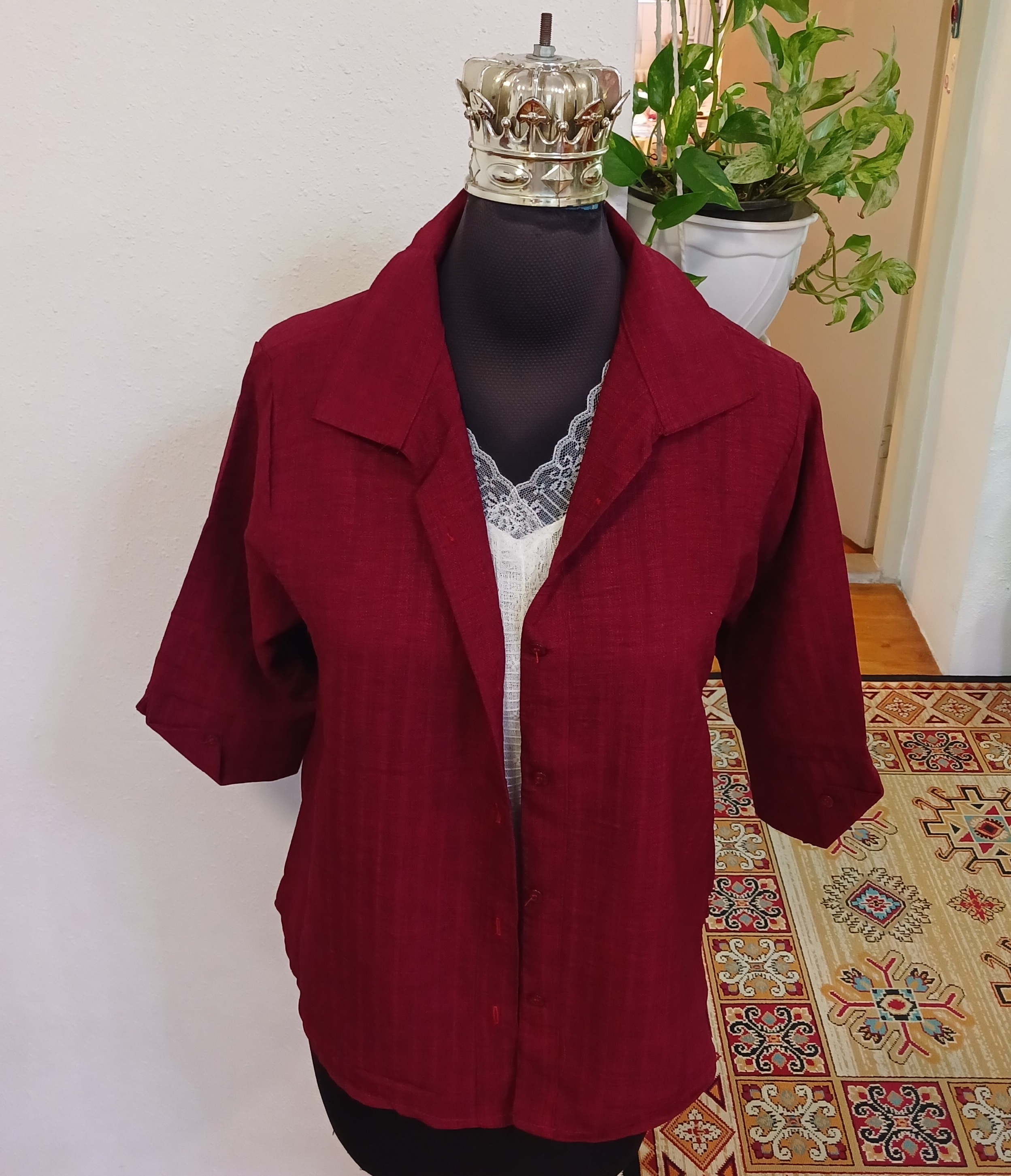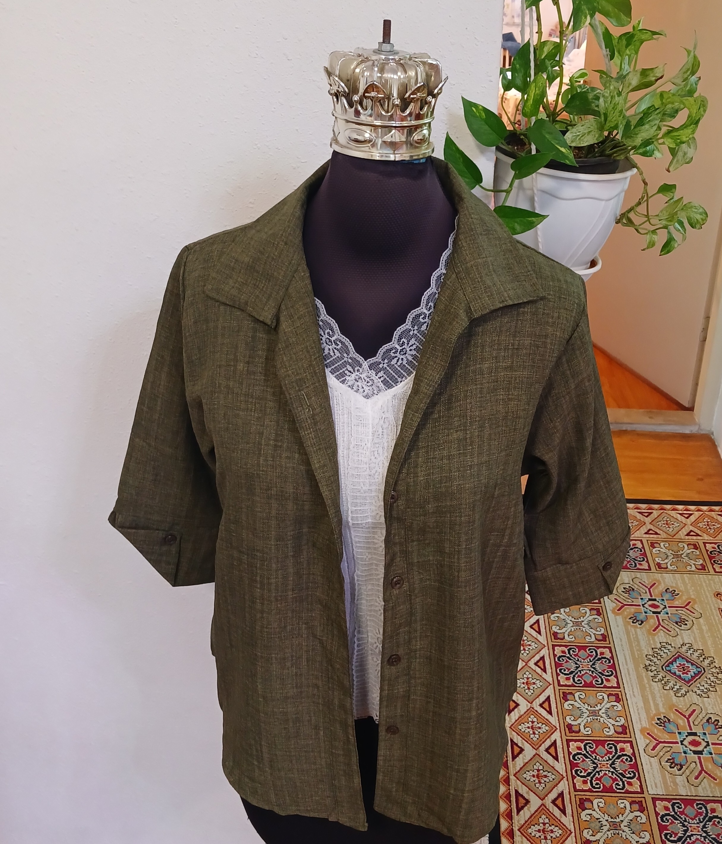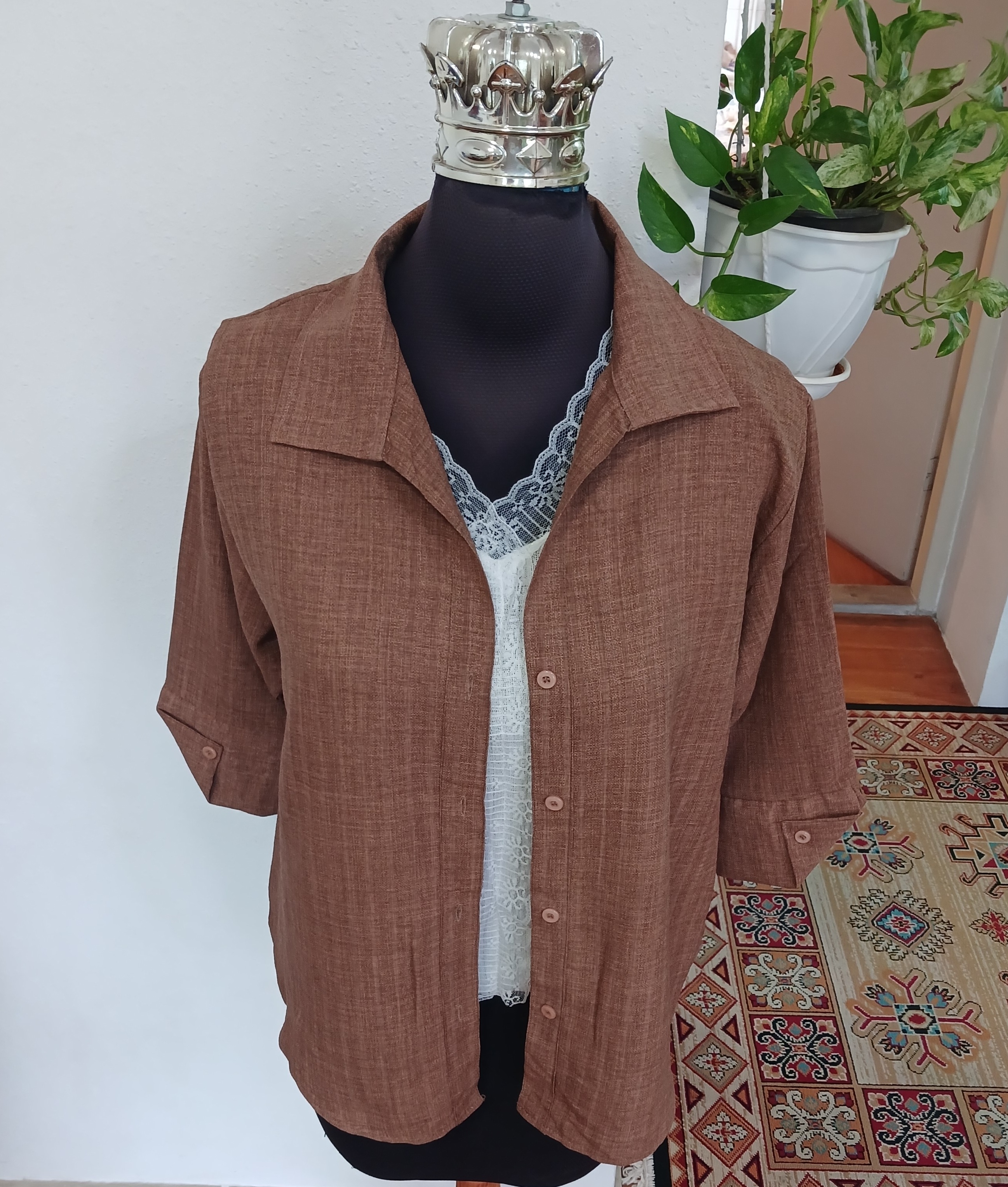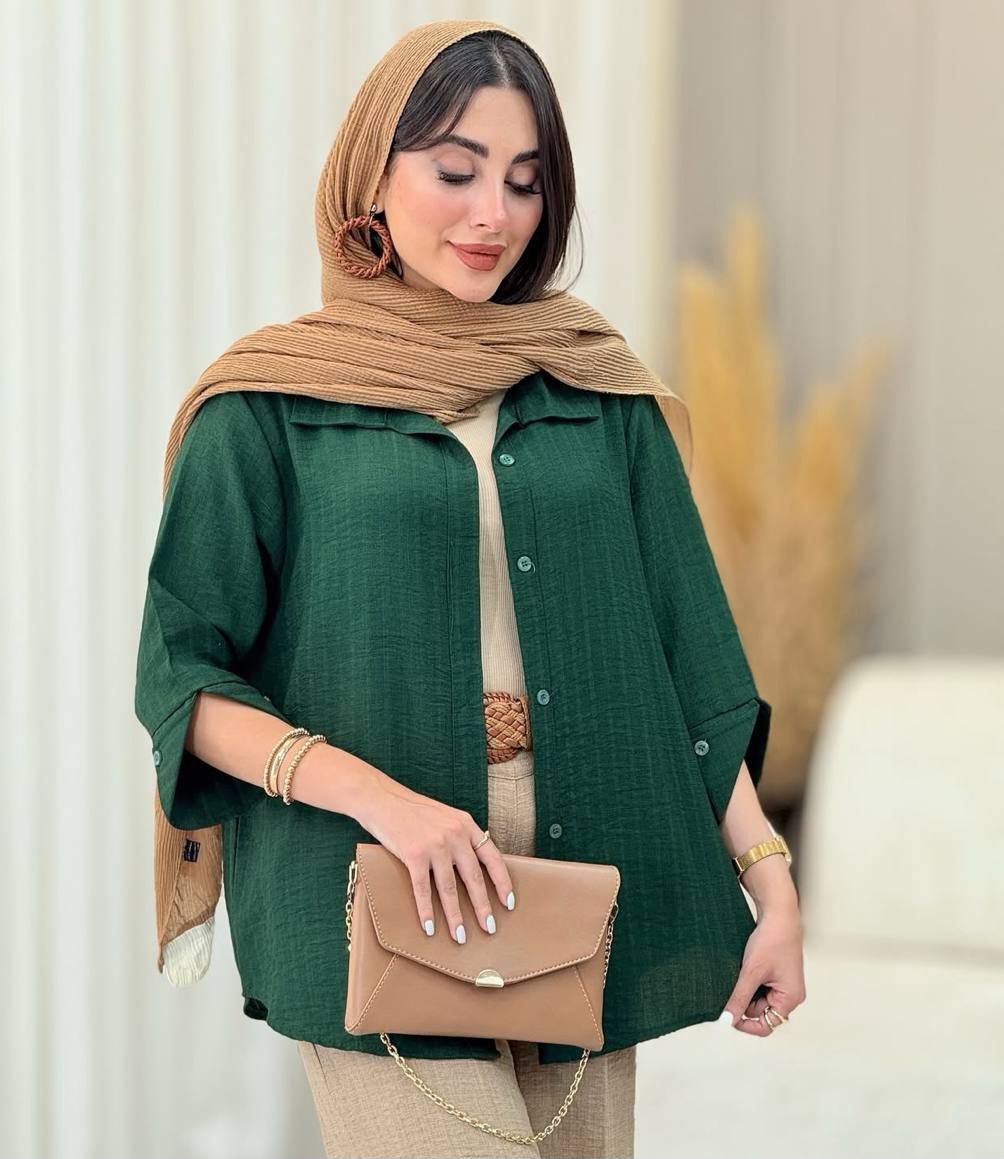 شومیز زنانه یقه مردونه جلودگمه آستین هشتی پاگون دار