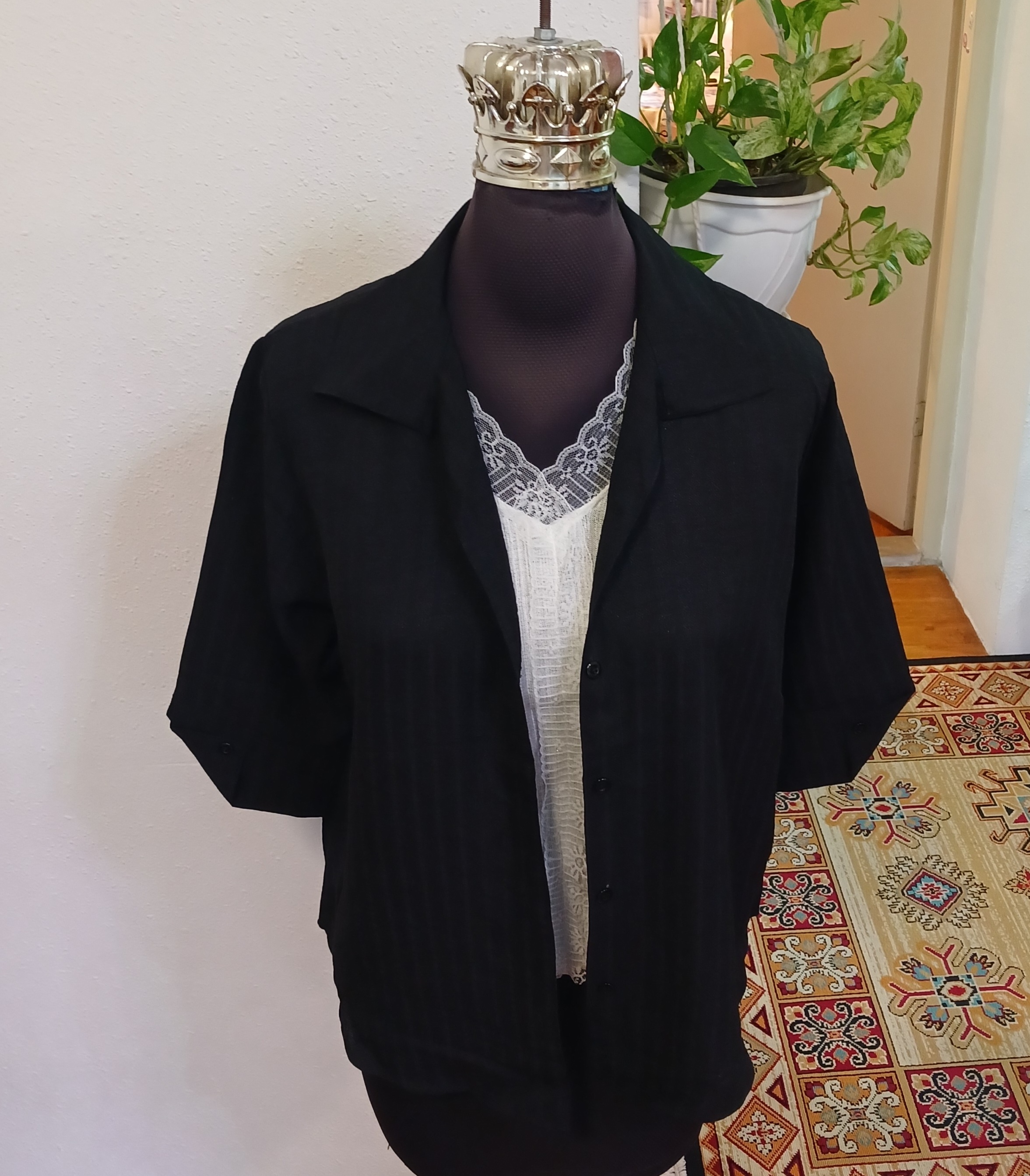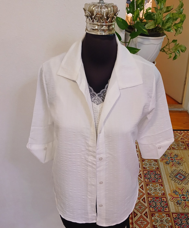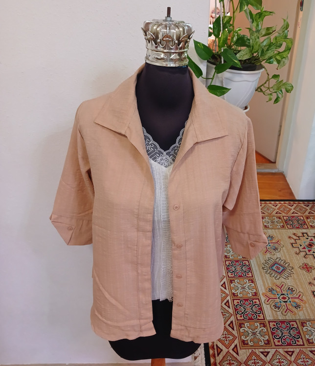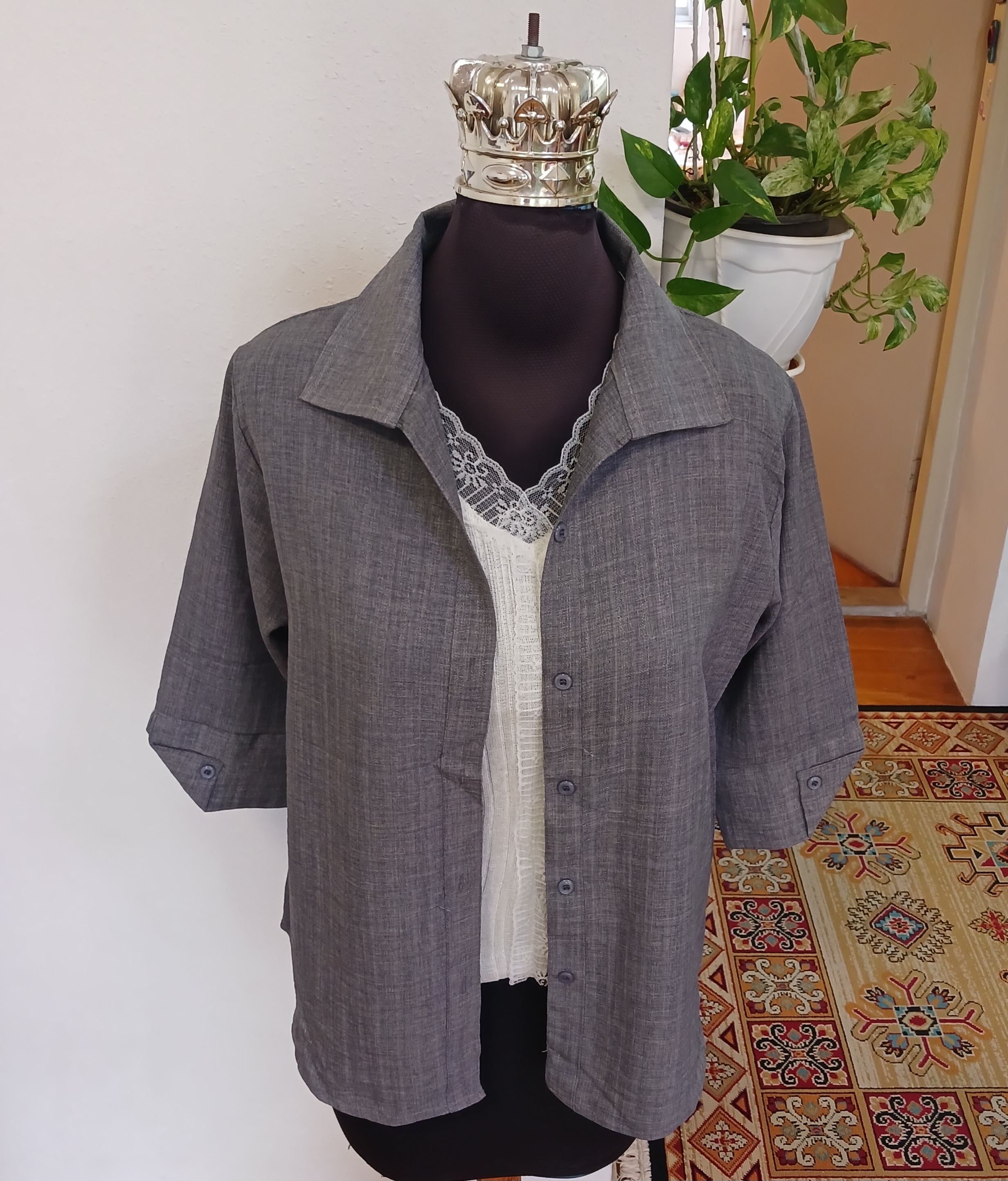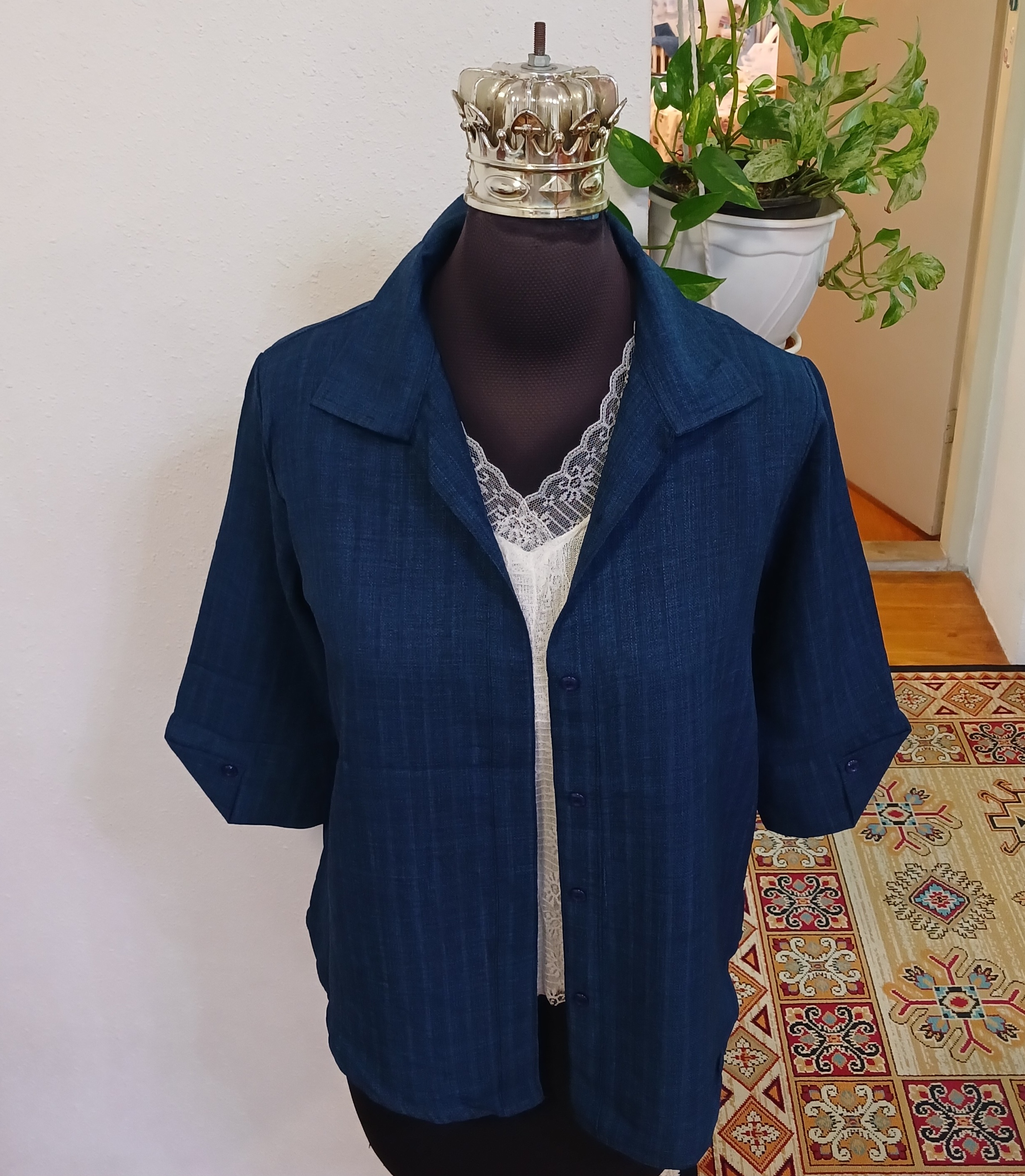 شومیز زنانه یقه مردونه جلودگمه آستین هشتی پاگون دار