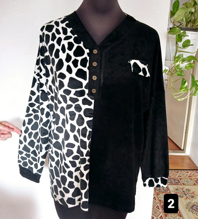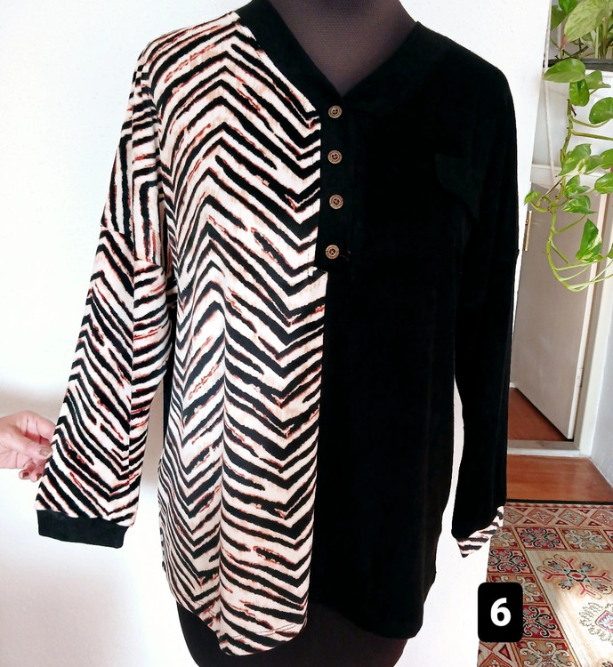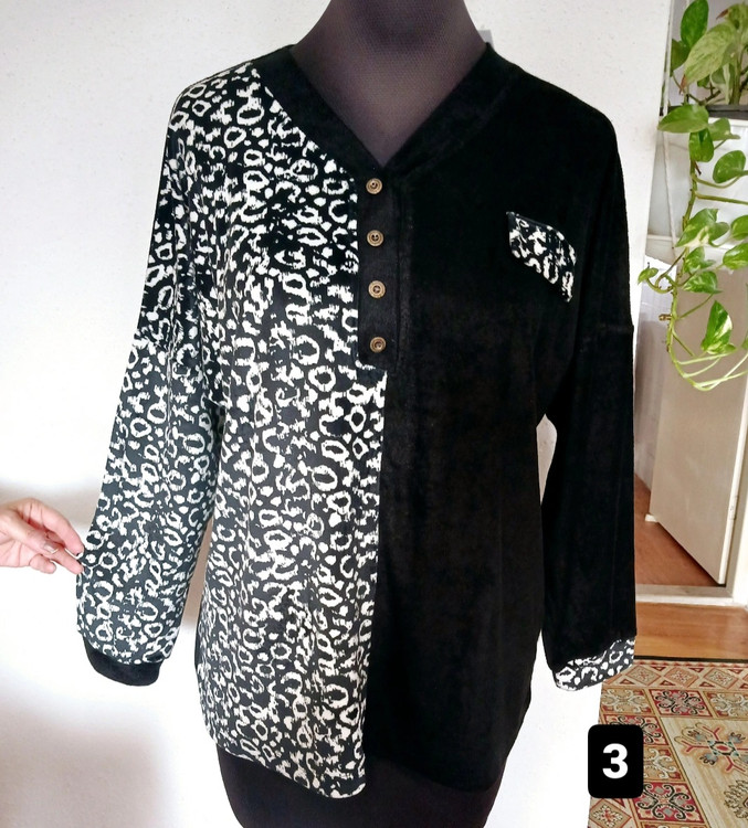 بلوززنانه قواره دار دورسینه 130 باکشسانی تا 170 ؛ بلوز زنانه طرحدارمخمل ؛ بلوززنانه یکطرف مشکی یکطرف طرحدار ؛ بلوززنانه شیک ؛ بوززنانه سایزبزرگ