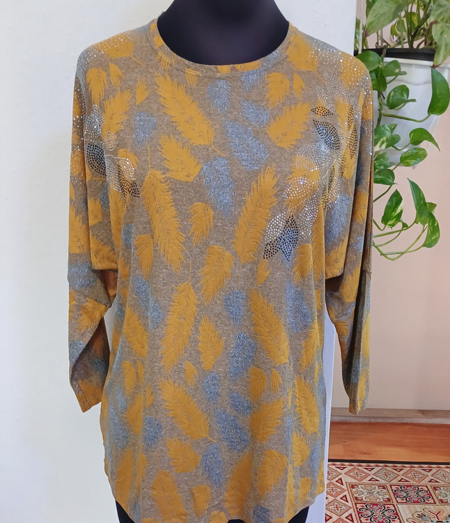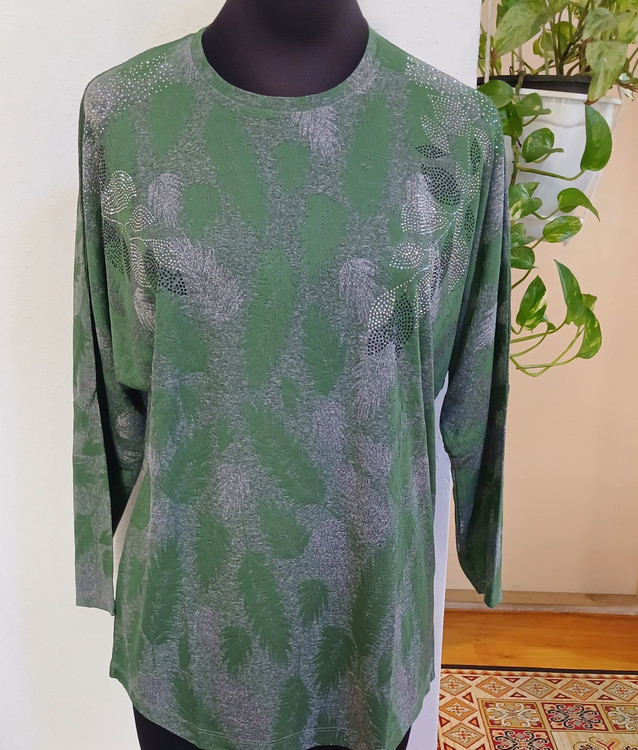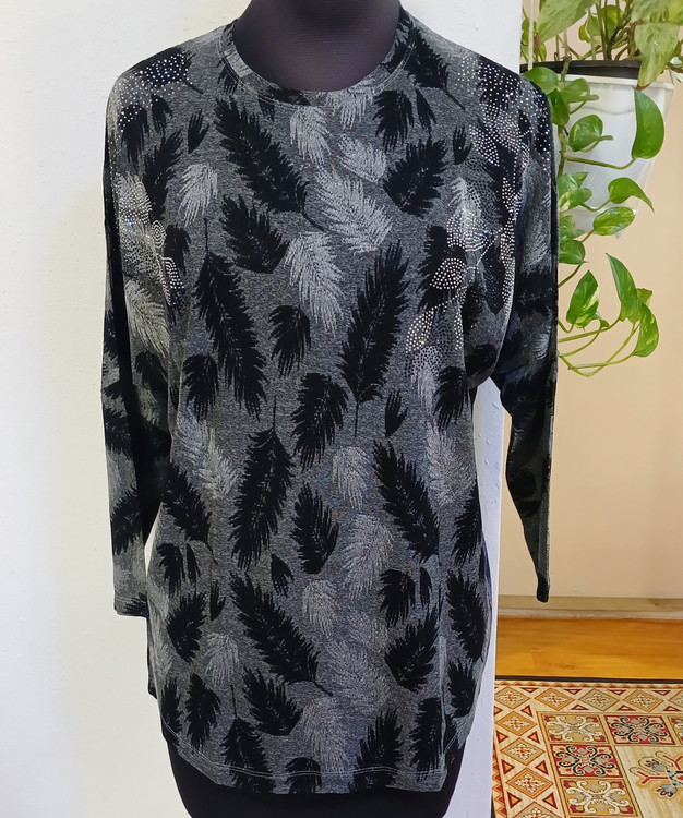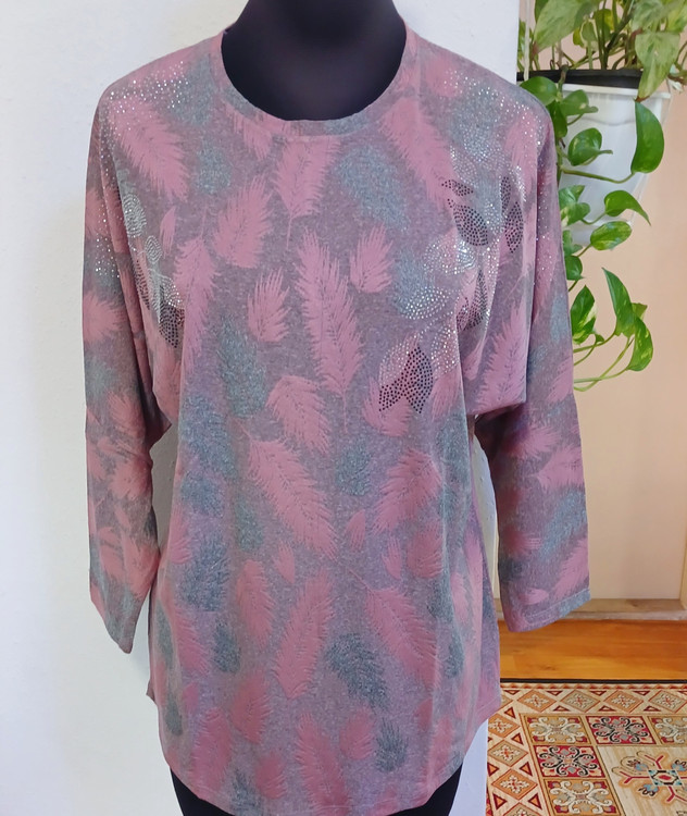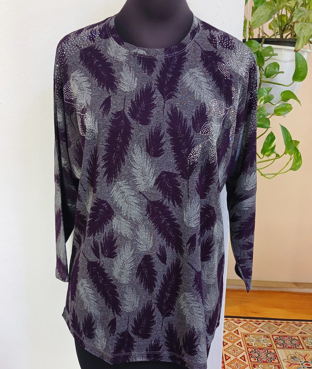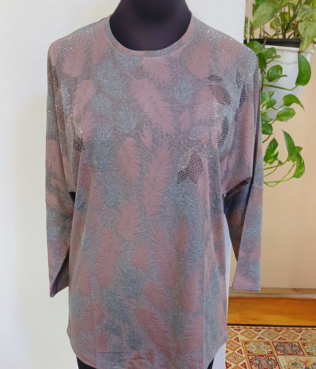 یه بلوز زنانه لطیف ؛ بلوز نگینی طرح پر قواره بزرگ بسیار شیک ولطیف