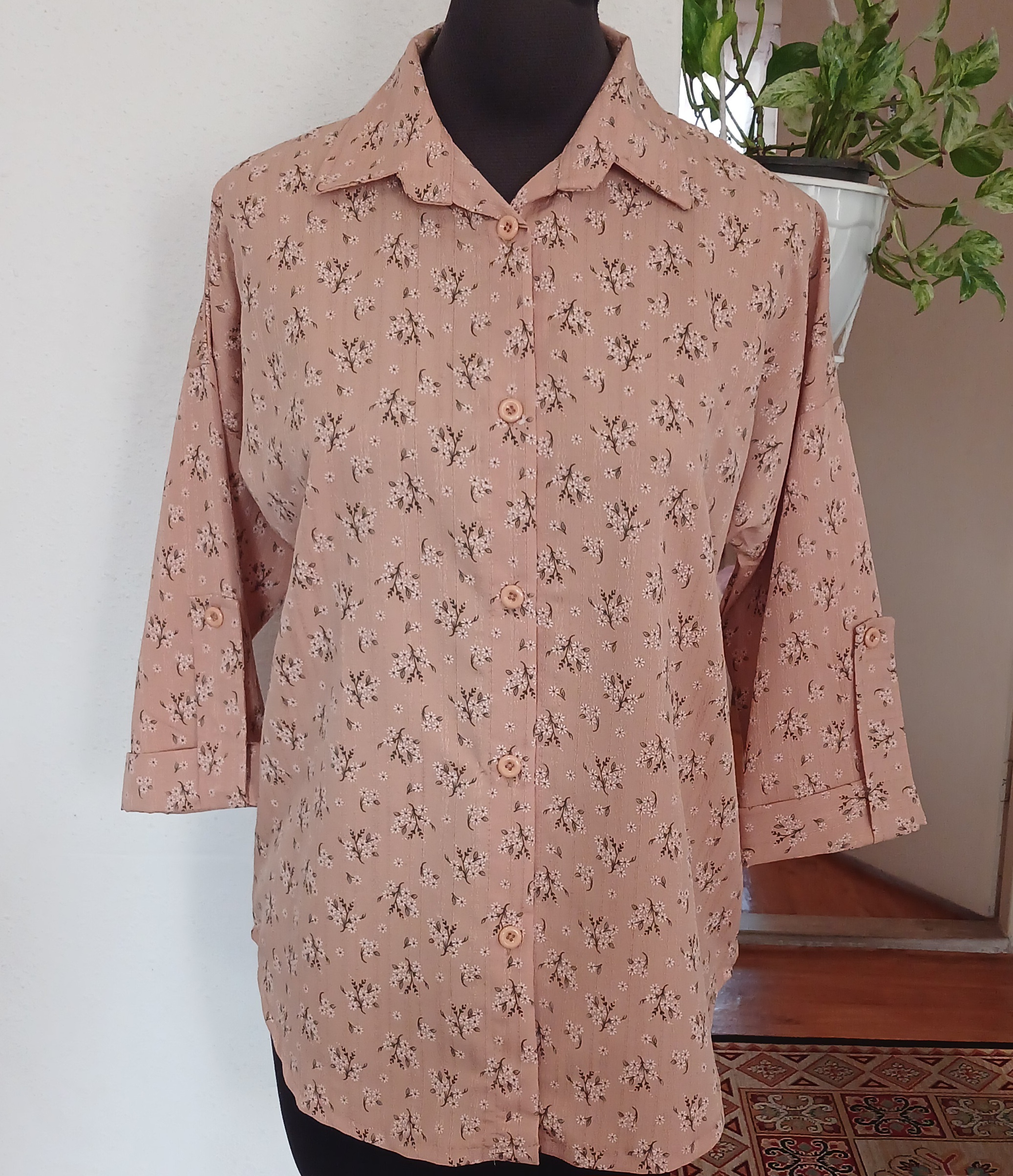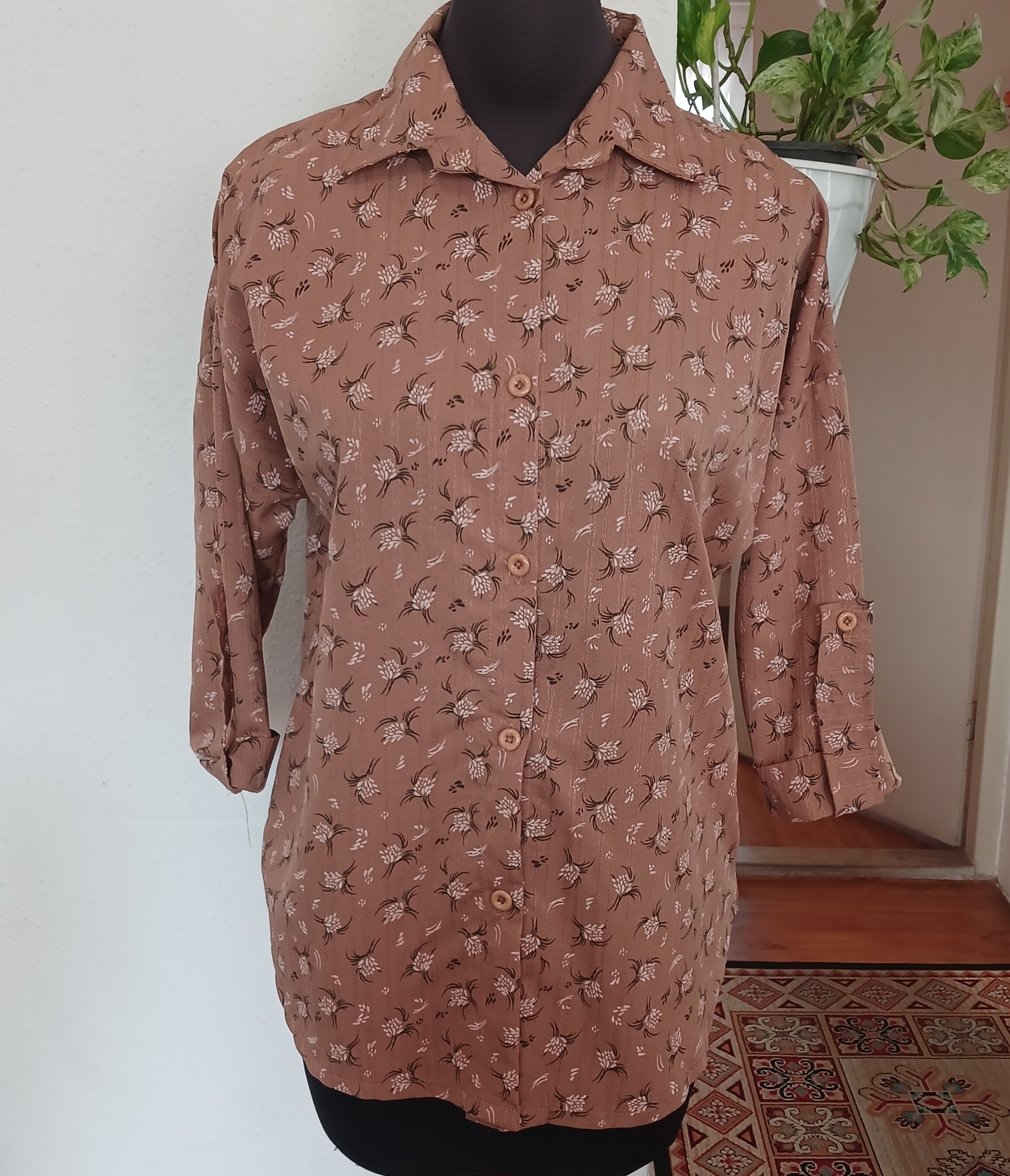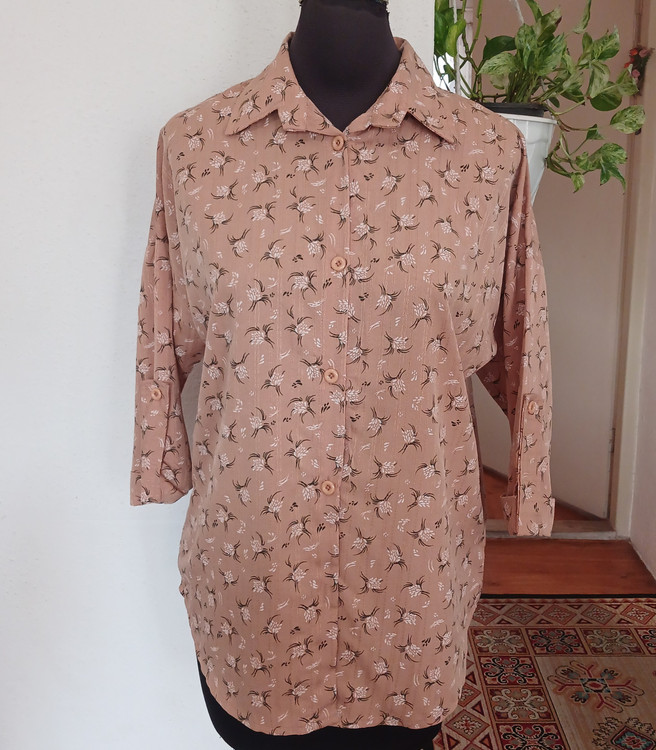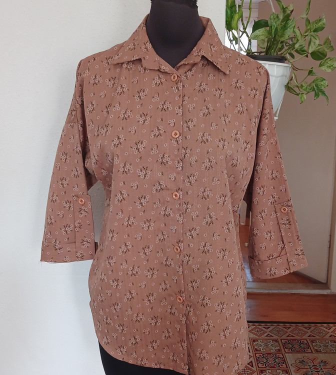 شومیز جلو دگمه گل گچی آستین پاگون دار
