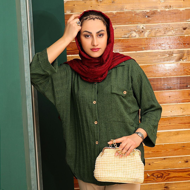 تونیک مانتویی پاییزه جلودگمه دار پارچه مراکشی