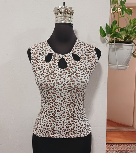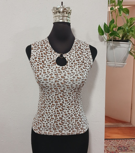 تاپ زنانه حلقه ای یقه اشکی پلنگی