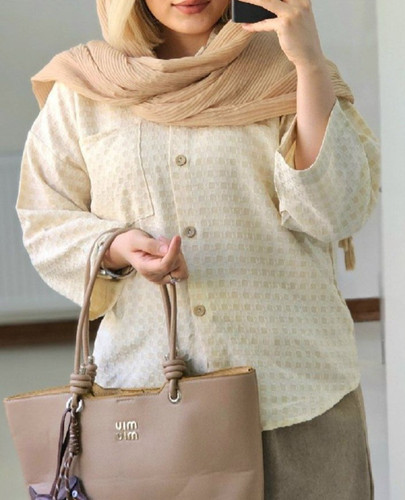 شومیز زنانه حصیری پشت پیله تک جیب دگمه دار