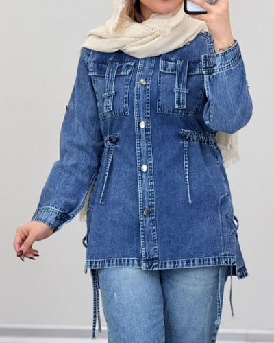 تونیک مانتو جین زنانه ( جین اصلی ) کمر گتر یقه مردونه
