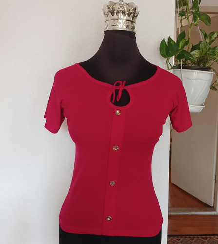 تیشرت زنانه و دخترانه سه دگمه یقه گرد کبریتی