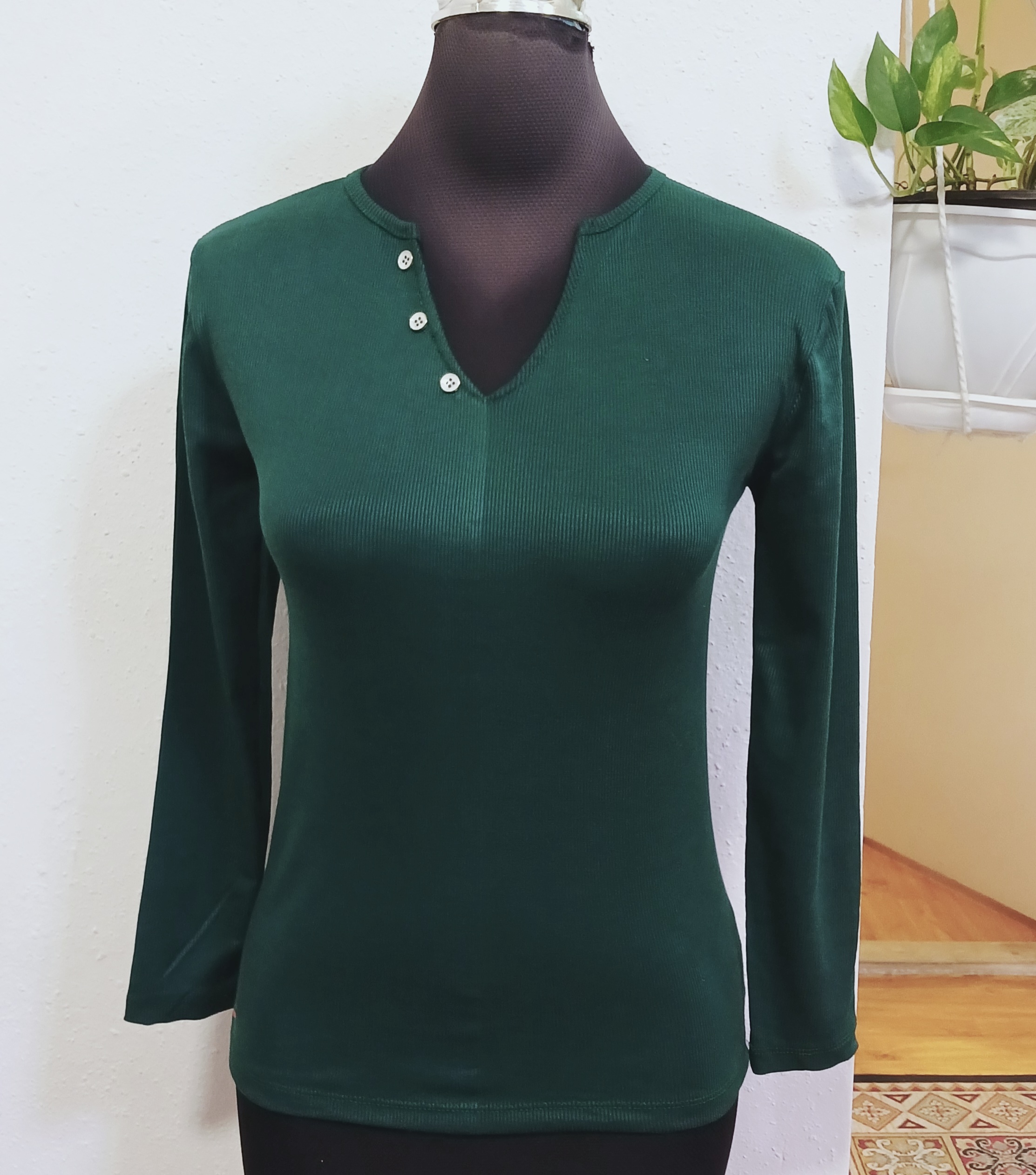 بلوزآستین بلند کبریتی یقه وی دگمه نما