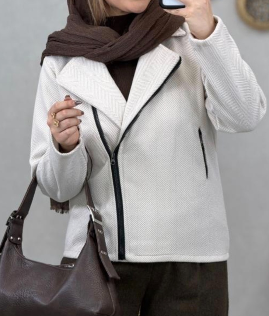 کت زنانه یقه فانتزی فوتر جناقی جلوزیپ